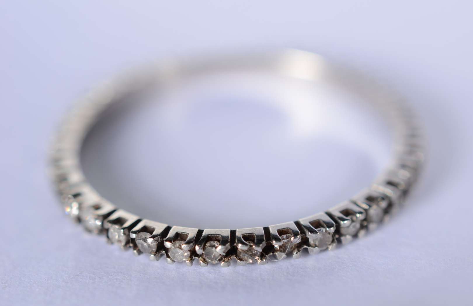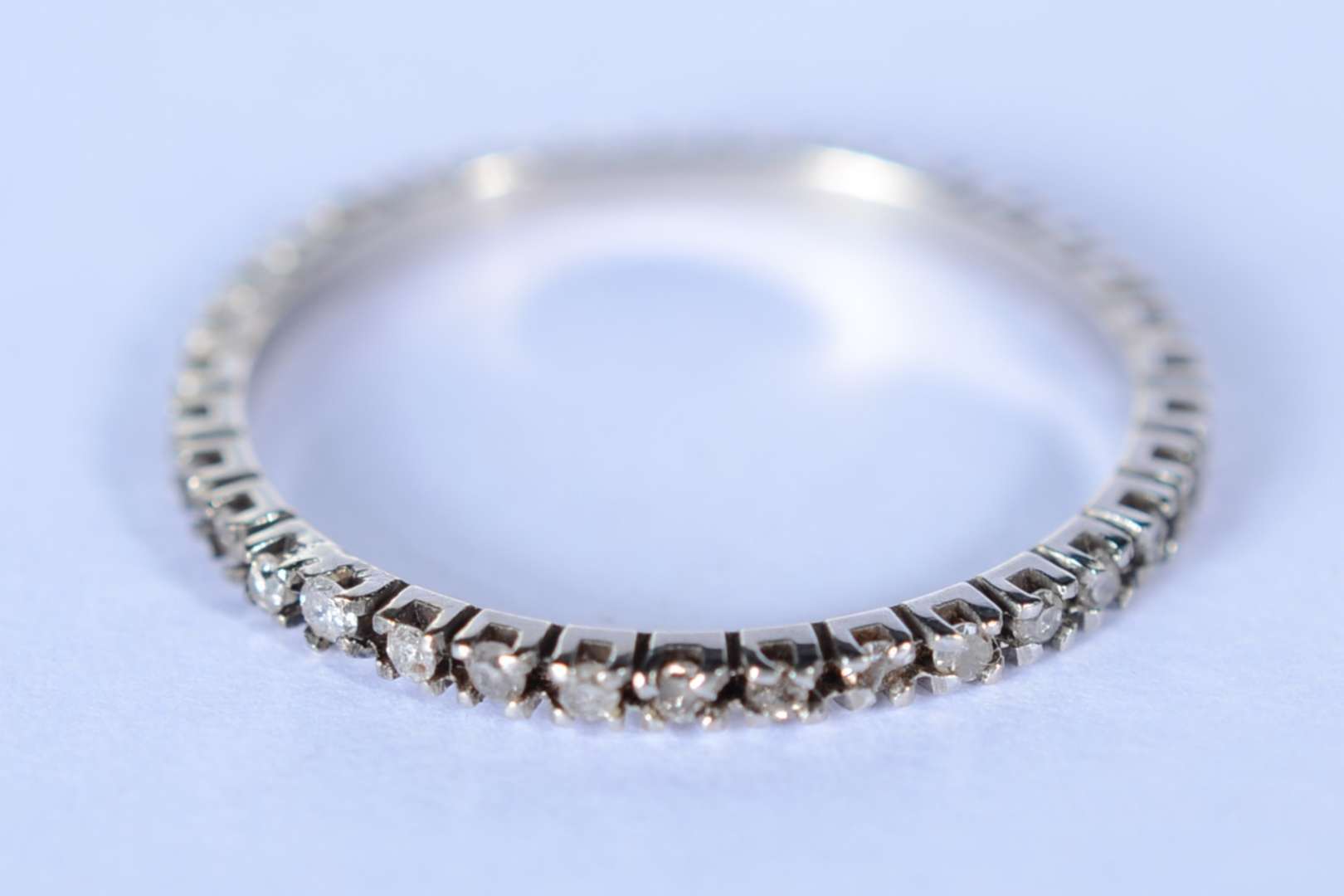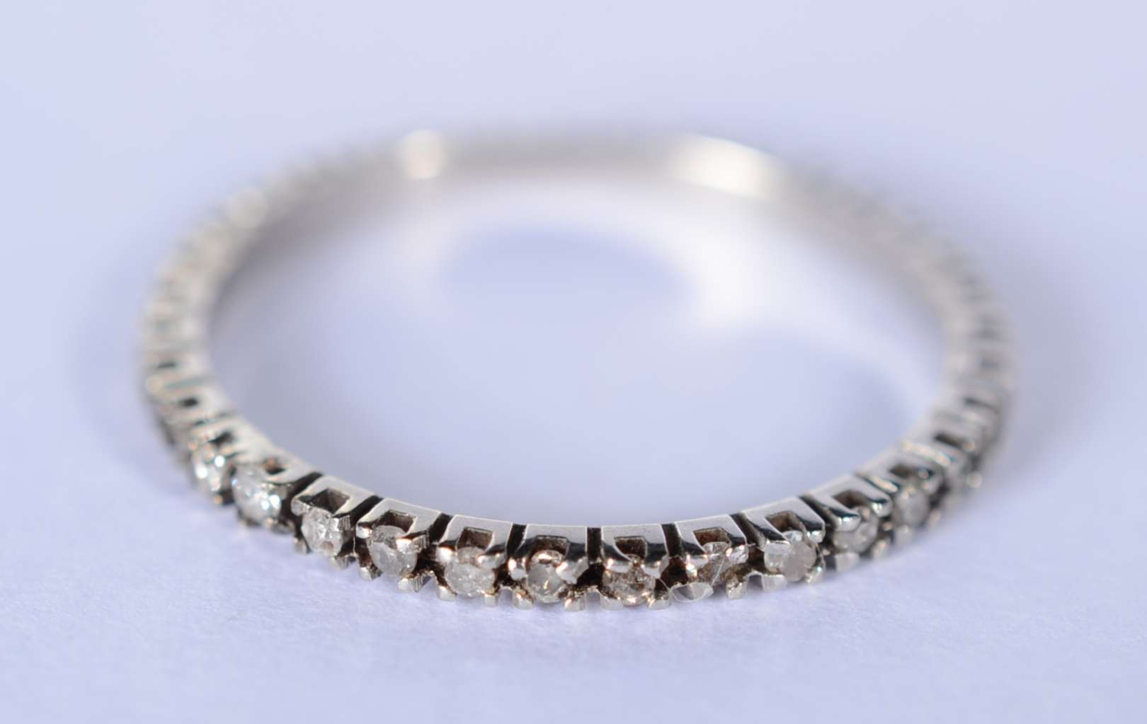 Meia aliança de ouro branco cravejado com 10 brilhantes, aro 14. (Por motivos de segurança a peça não se encontra na ...