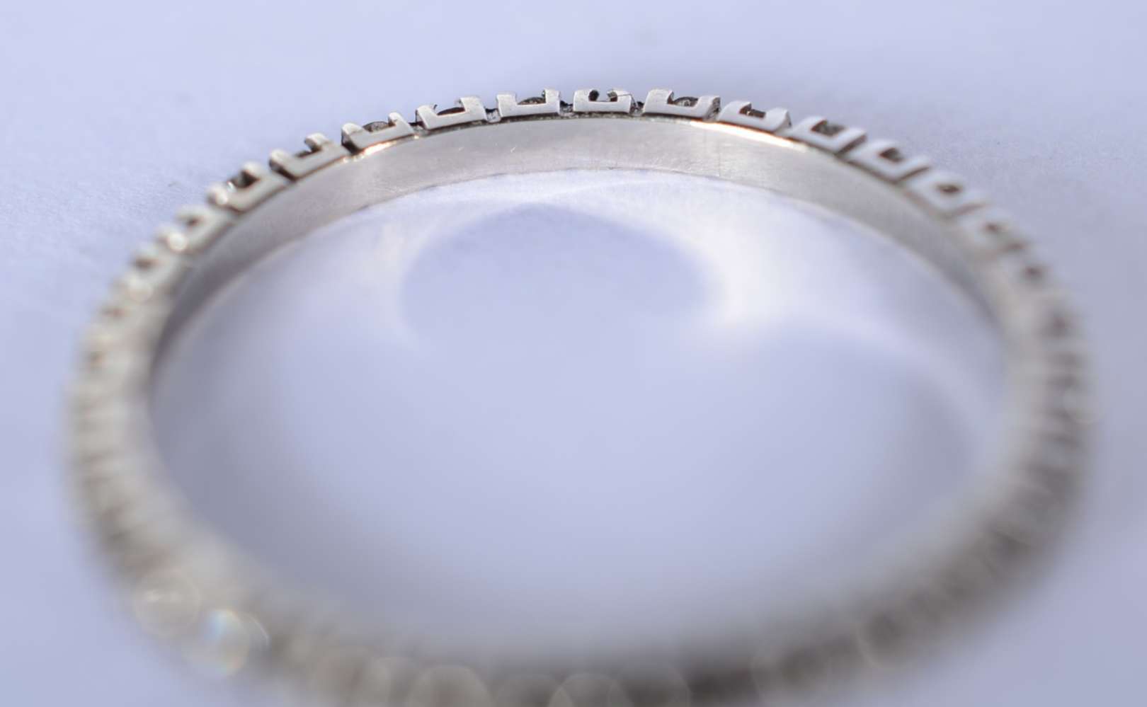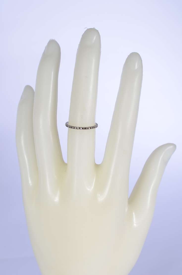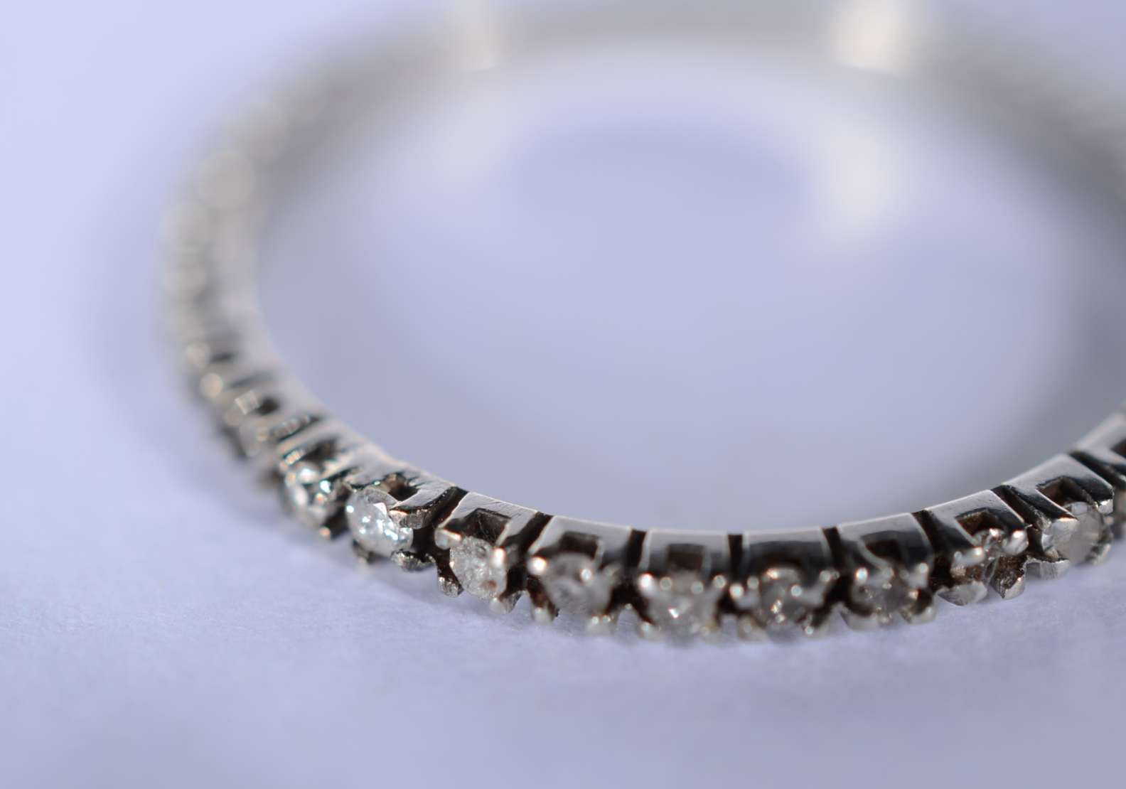 Aliança completa de ouro branco cravejado com 25 brilhantes, aro 13. (Por motivos de segurança a peça não se encontra...