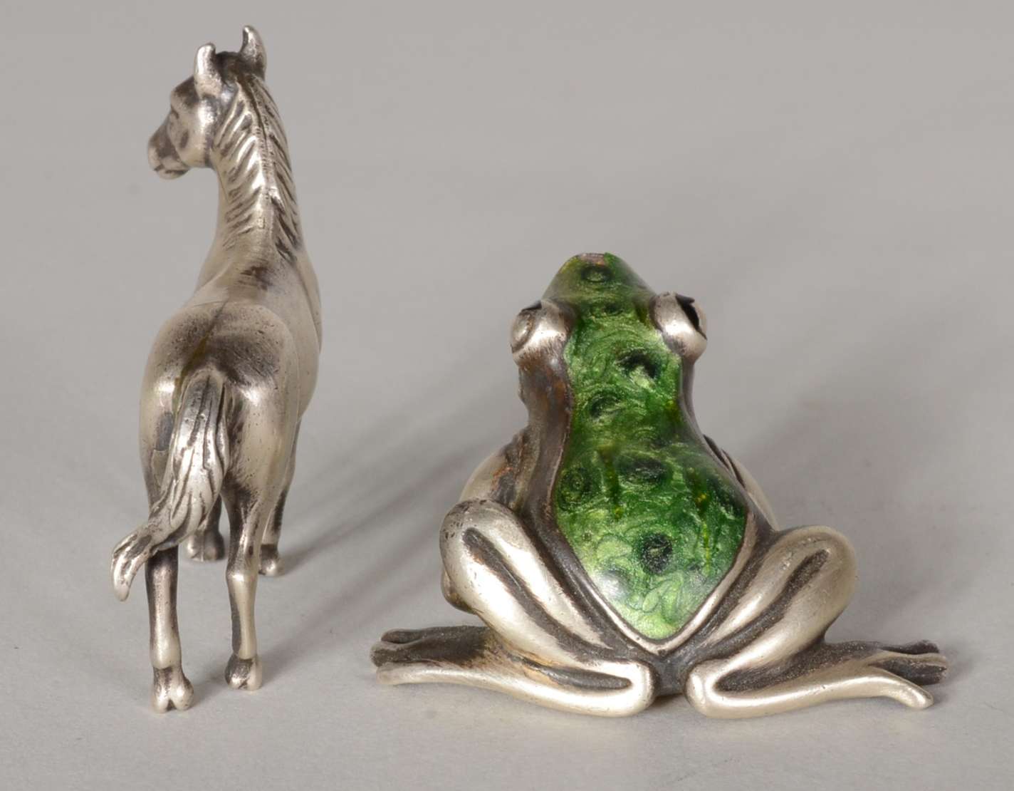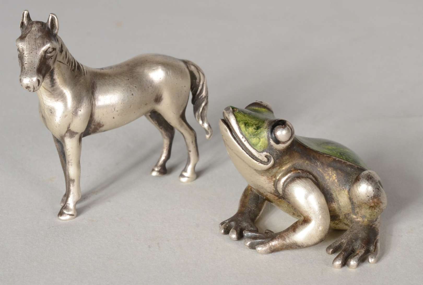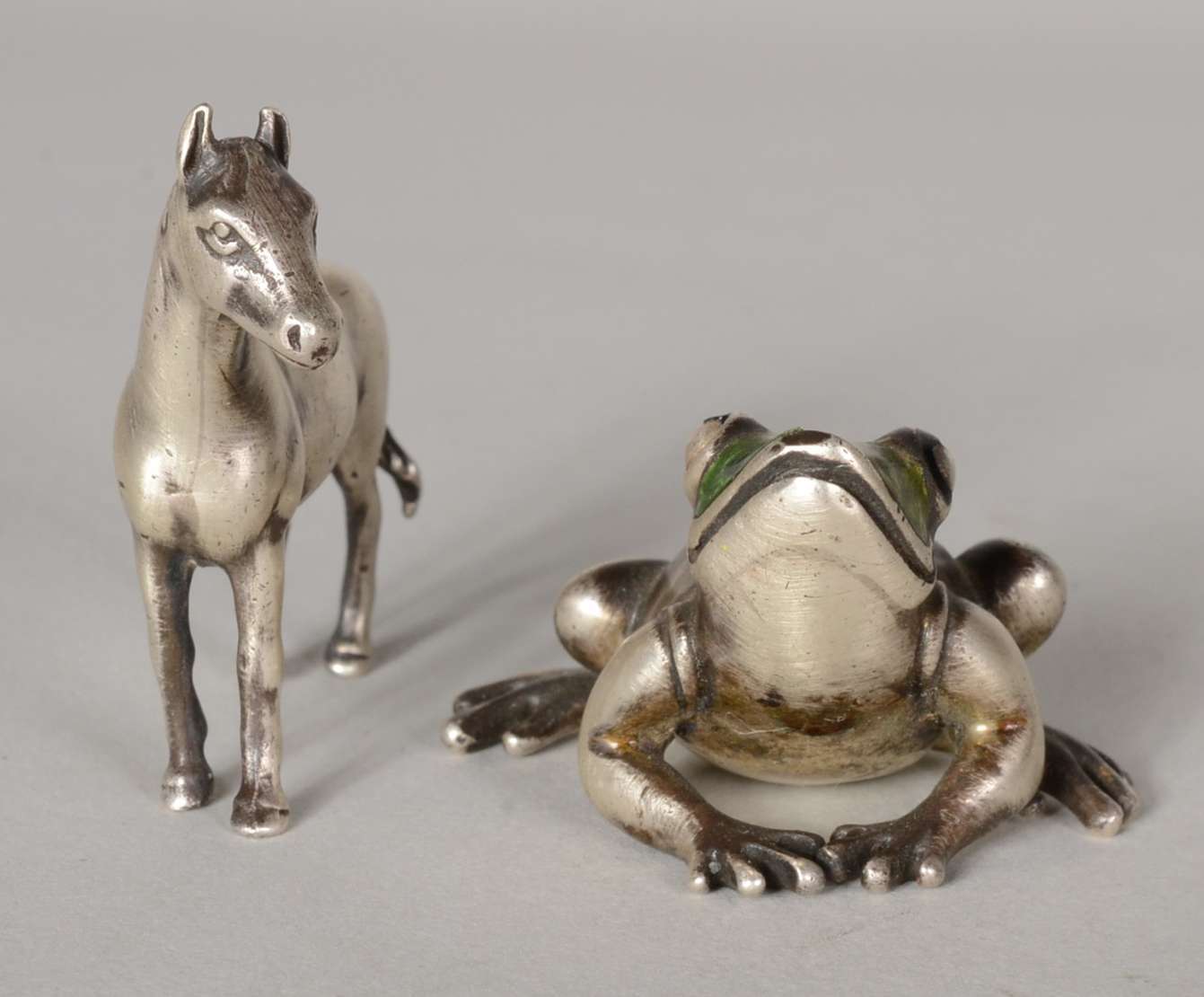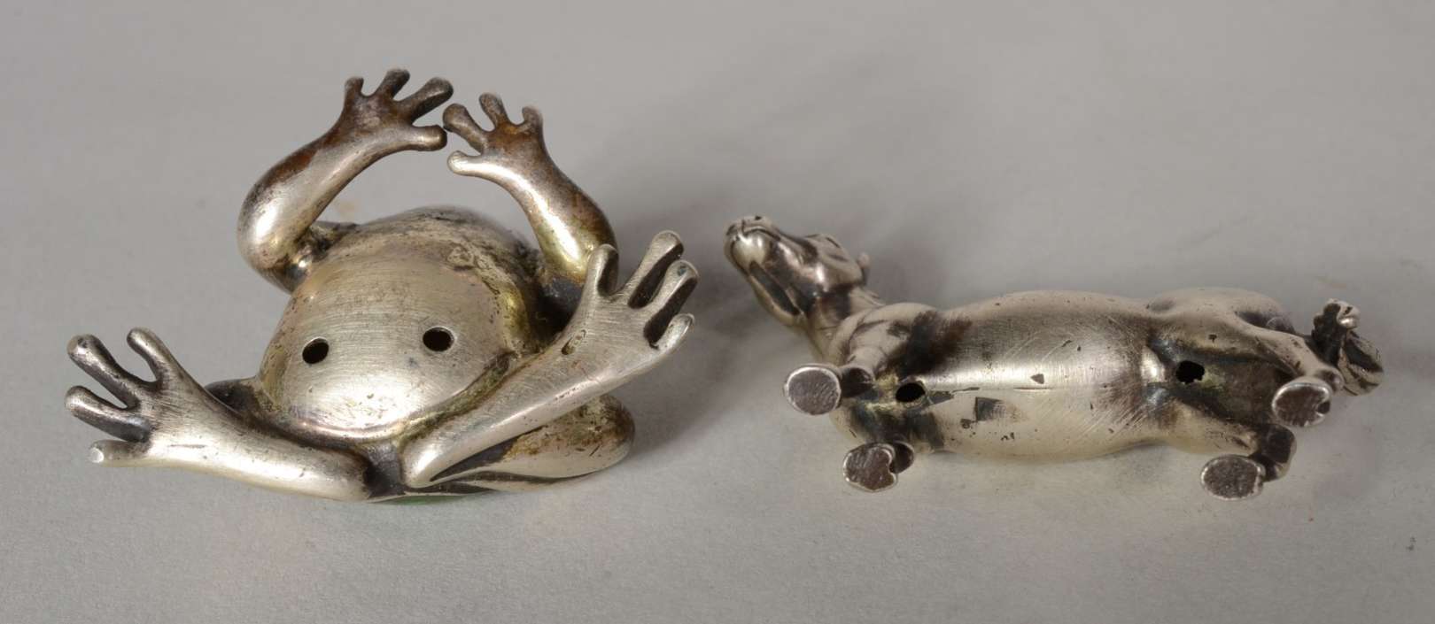 Dois porta retratos com molduras de metal.