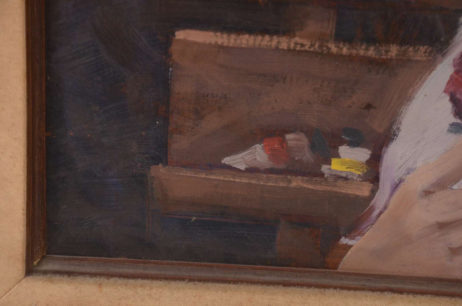 Óleo sobre tela. Moldura com cupim, pequeno rasgo na tela e perda de tinta, precisando de restauro.