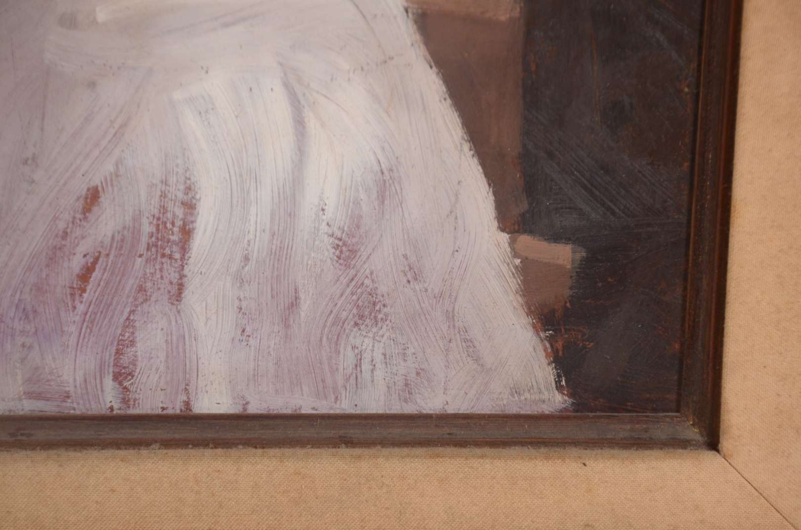Óleo sobre tela. Com craquelê e perda de tinta, precisando de restauro.