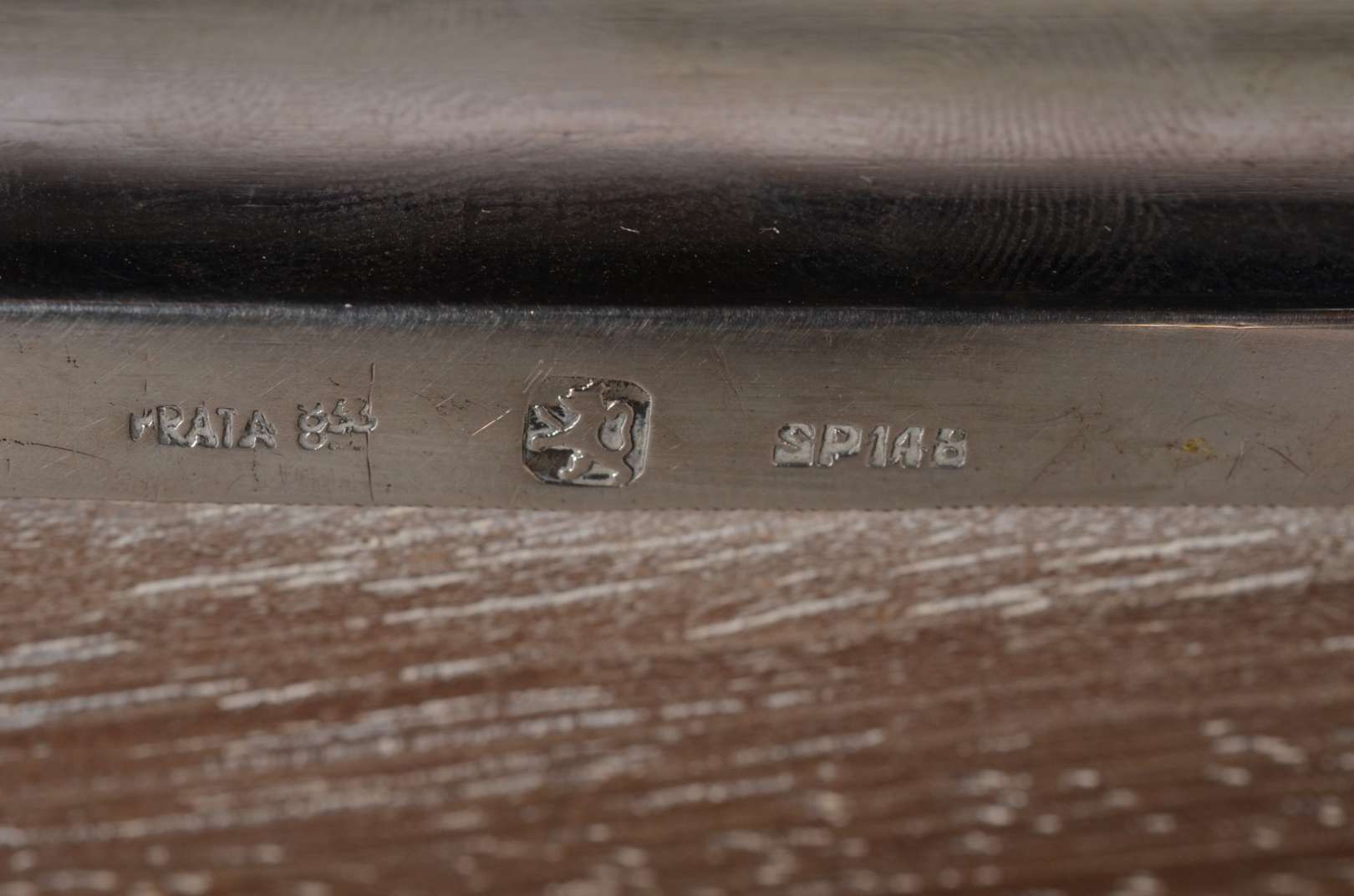 Três peças diversas de prata, sendo: castiçal com base oitavada; cinzeiro de pedra verde com borda de prata 900 mls; ...