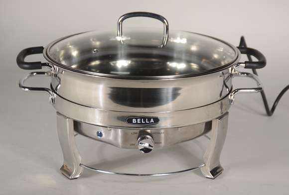 Caçarola com rechaud elétrico de inox 4,7 litros, marca Bella.