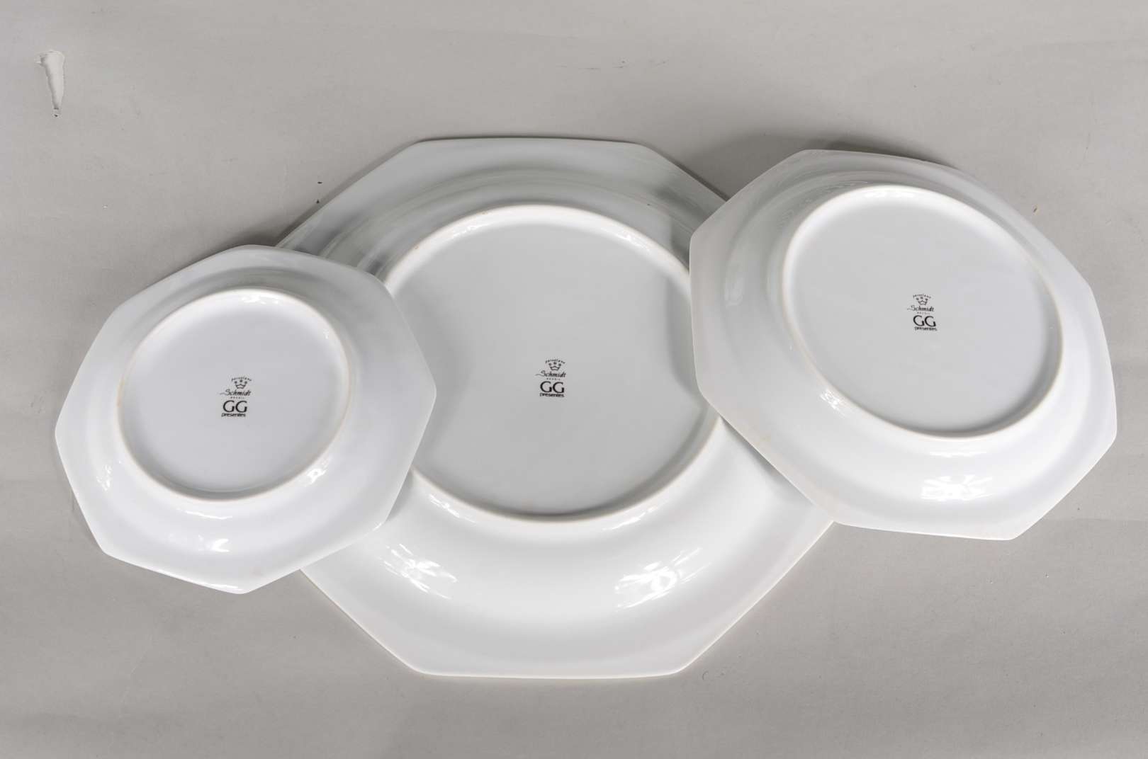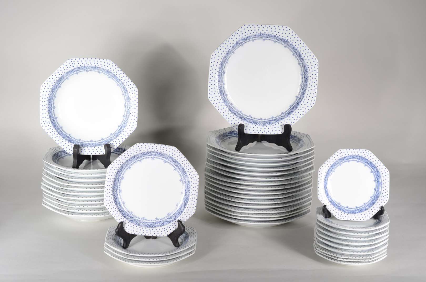 Aparelho para chá e café de porcelana branca com "xadrez verde", composto de: 12 fundos, 5 xícaras de chá com pires,...