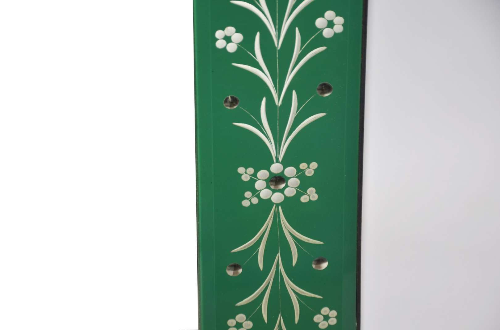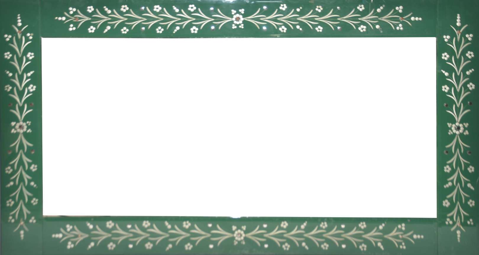 Grande espelho de cristal bisotado, moldura dourada e entalhada.