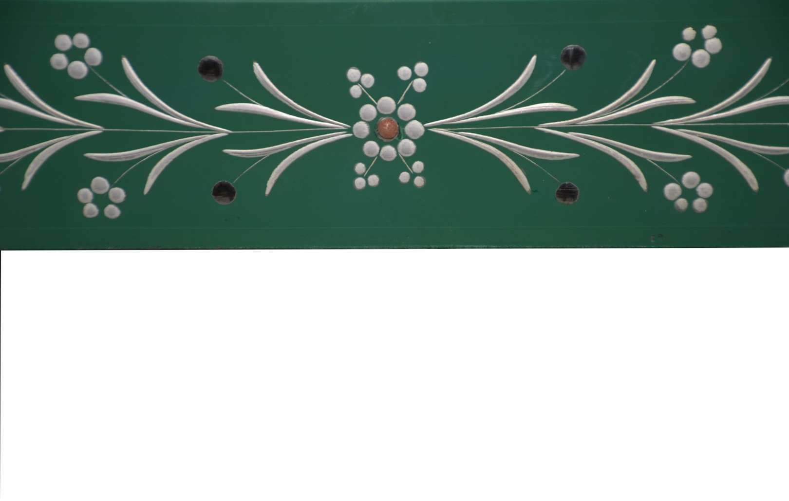Relógio de mesa de bronze decorado com guirlandas florais, mostrador com algarismos romanos. Máquina parada.