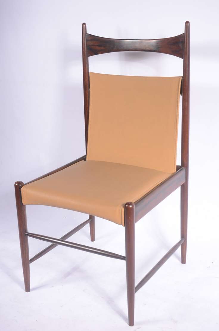Aparador de madeira nobre, tampo feitio meia lua apoiado em 4 pernas retas.