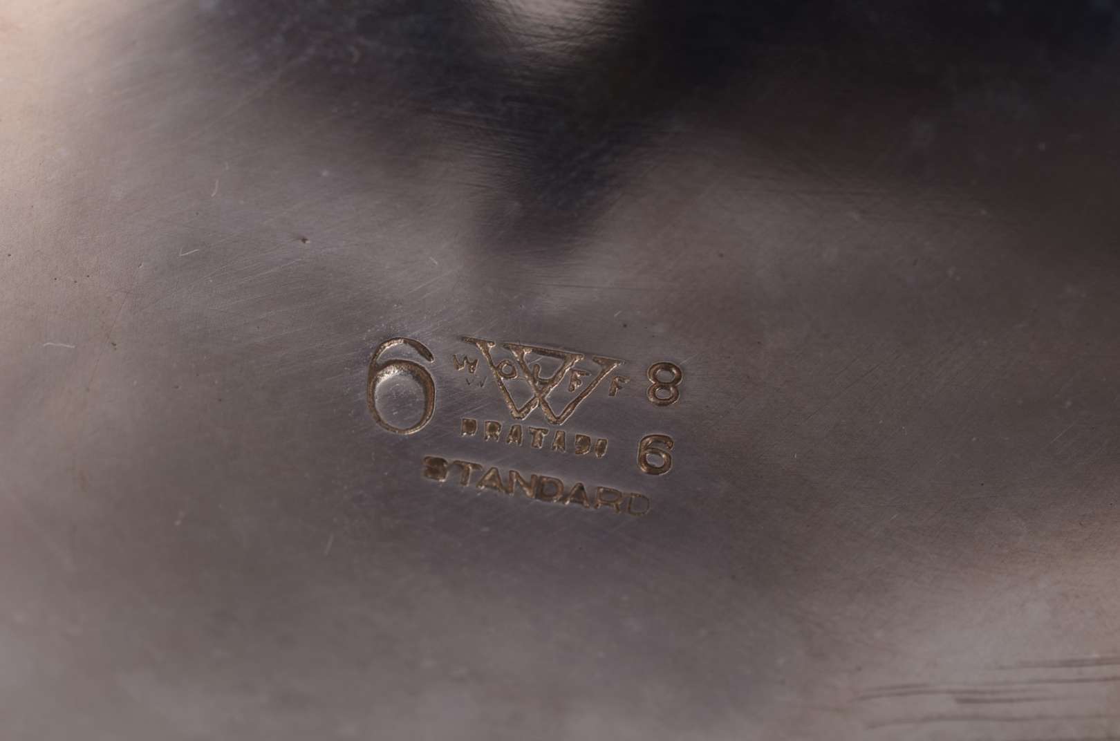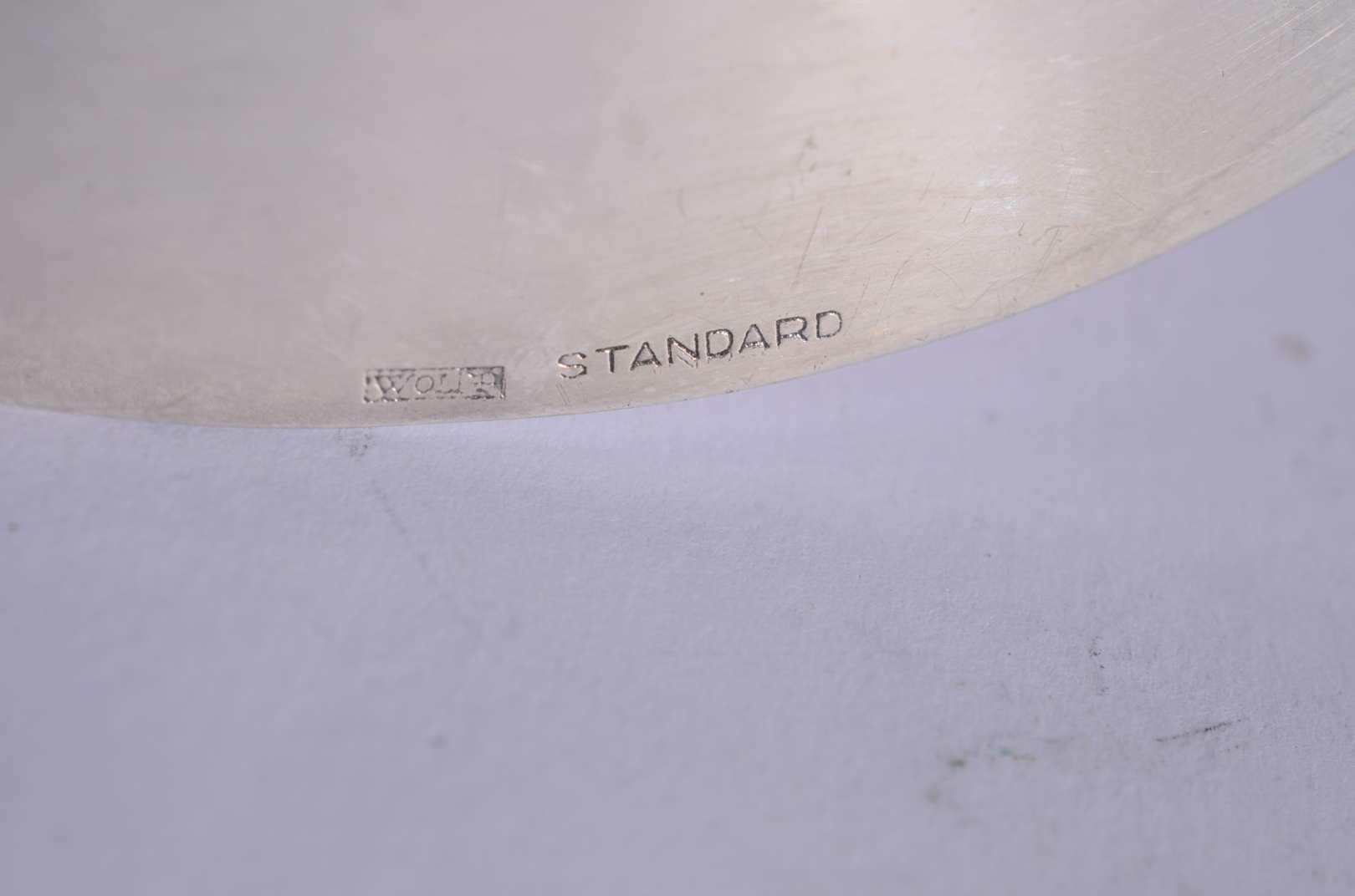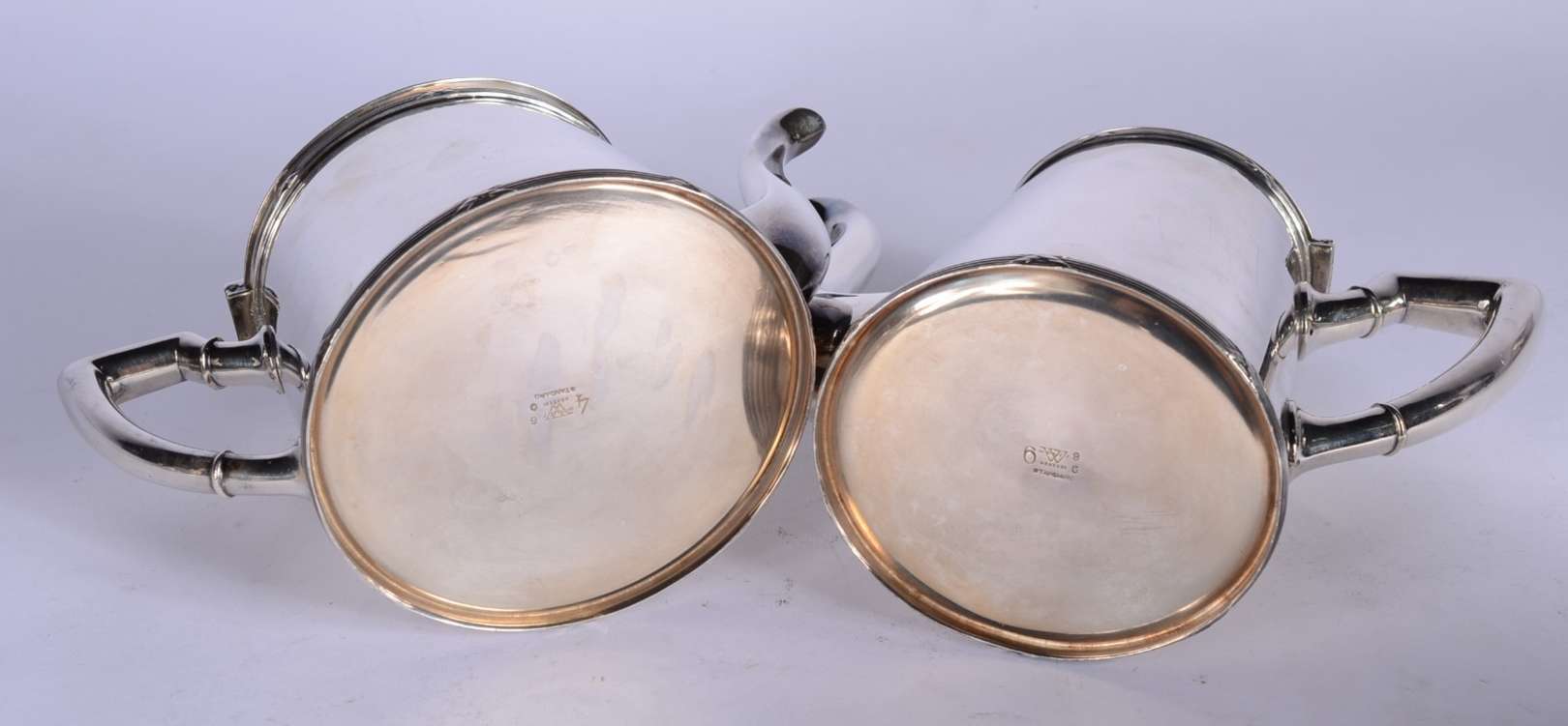 Duas peças de prata portuguesa, contraste Águia, 1º título, prateiro Mergulhão 916, sendo: leiteira com alça de madei...