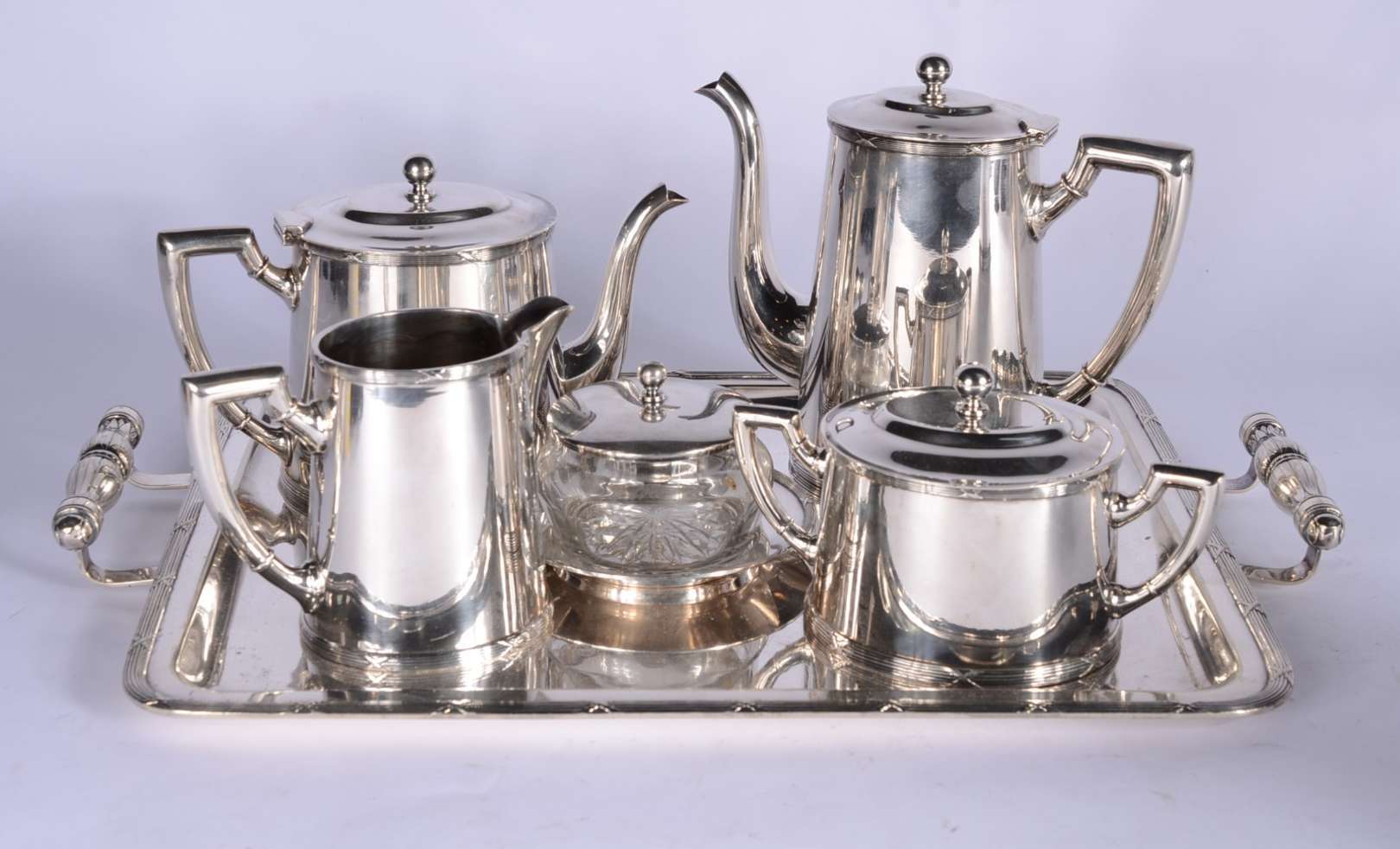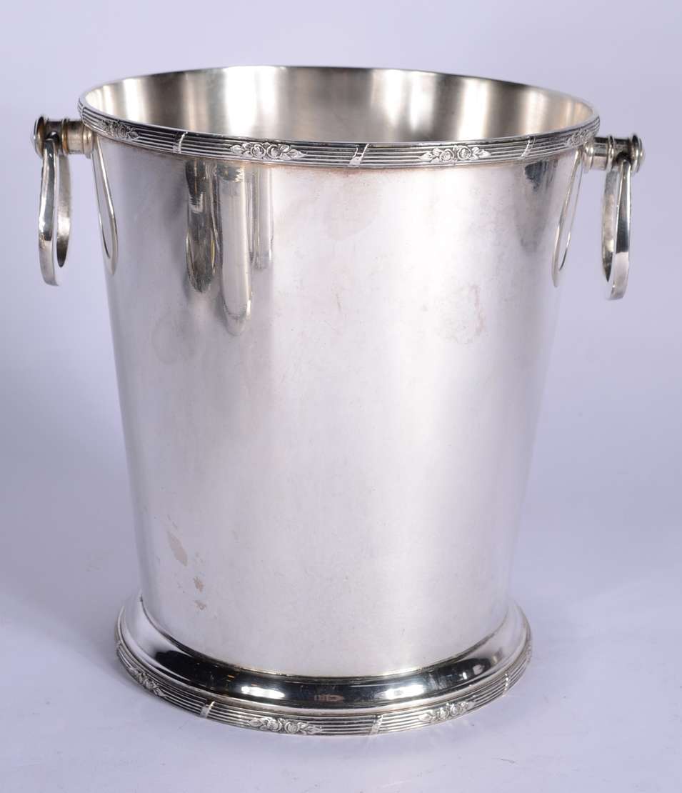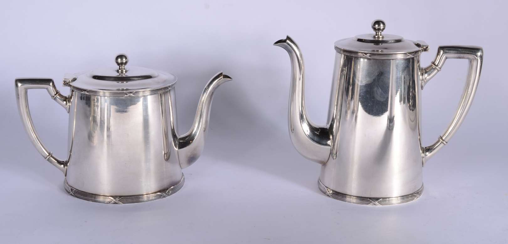 Duas peças de prata portuguesa, contraste Águia, 1º título, prateiro Mergulhão 916, sendo: leiteira com alça de madei...