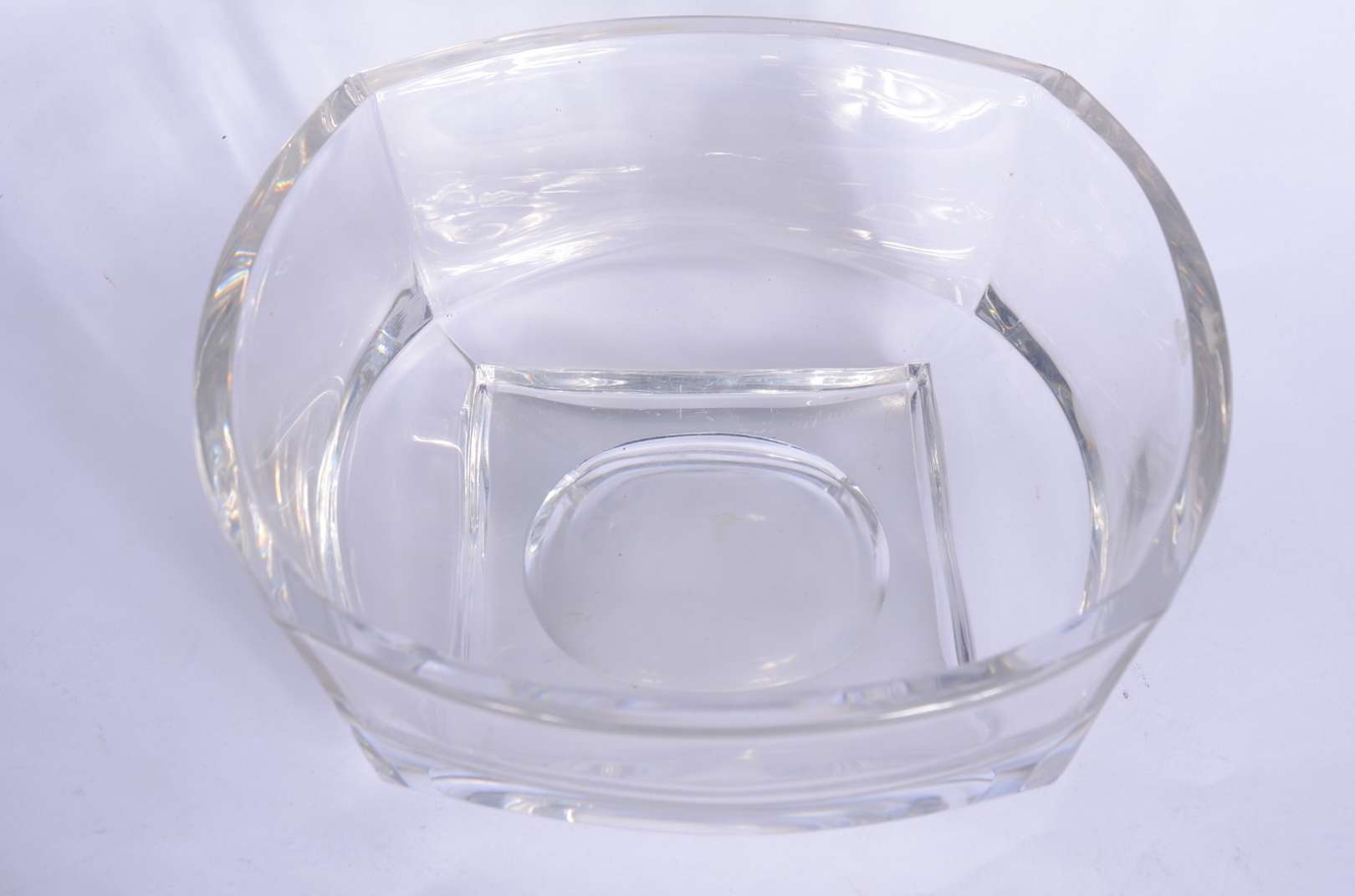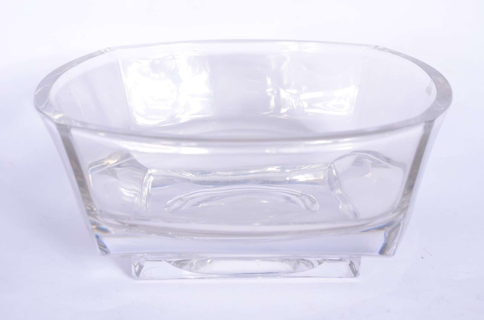 Dois vasos de vidro com gregas florais em relevo.