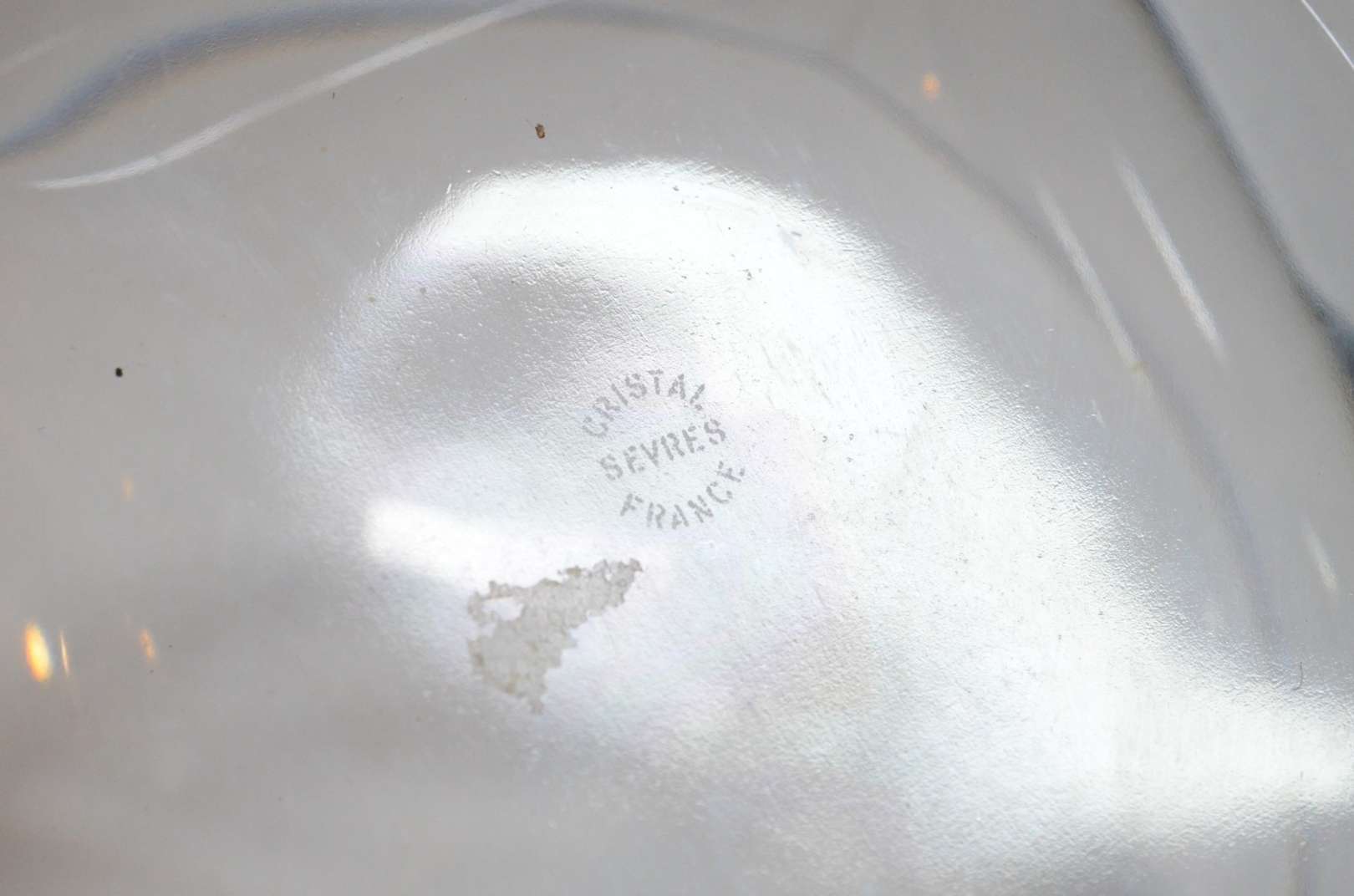 Vaso de vidro com guarnição de metal com guirlandas.