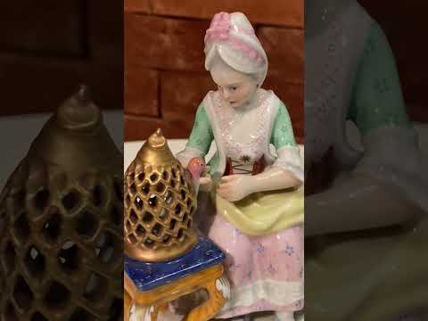 Par de esculturas de porcelana policromada com figuras de casal de camponeses.