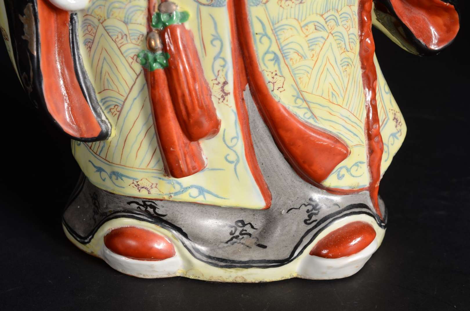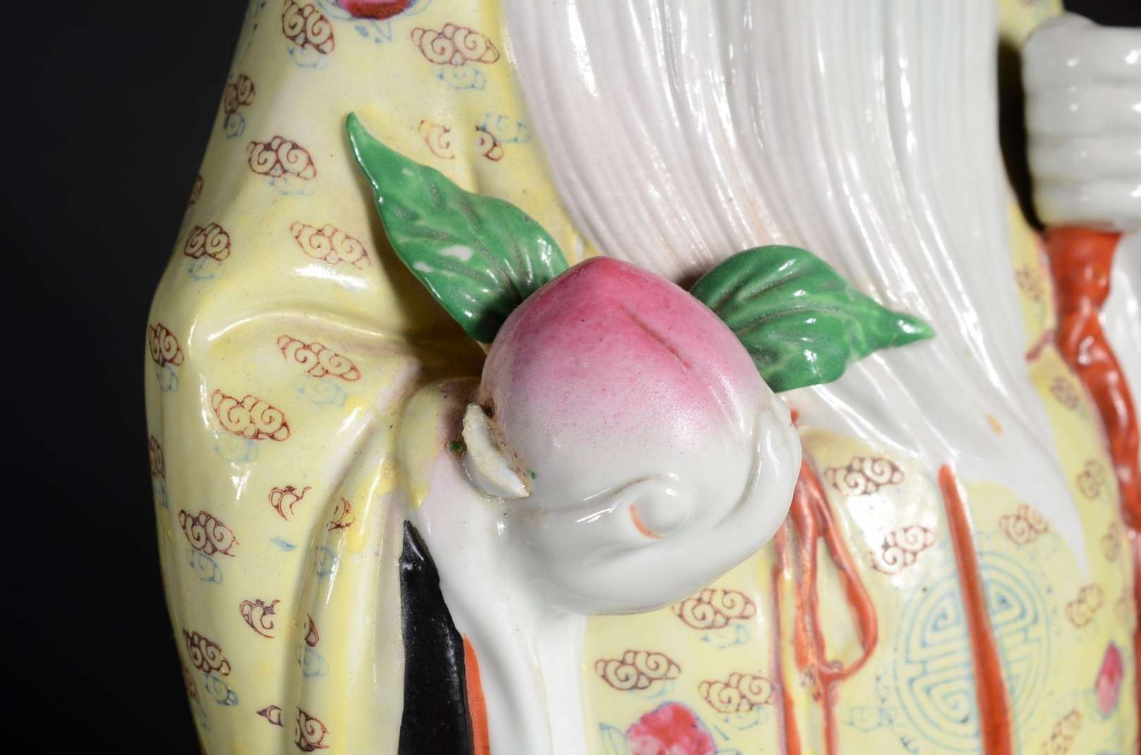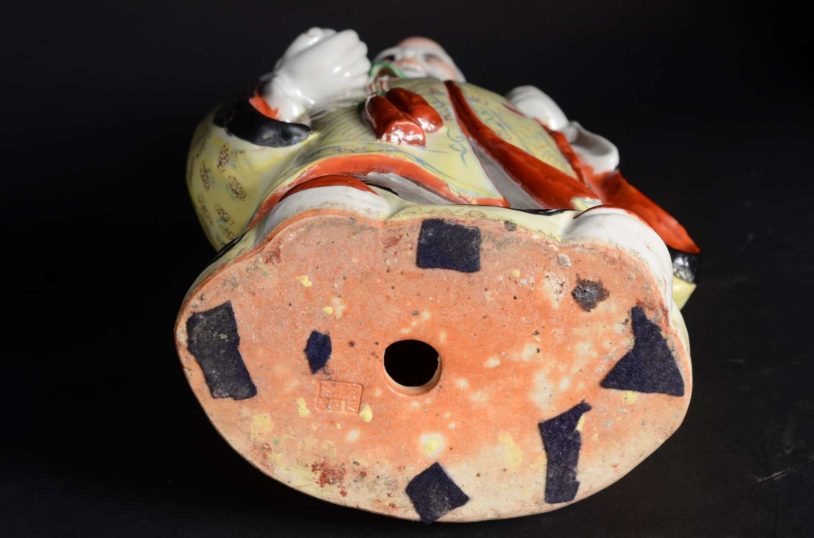 Estatueta oriental de madeira entalhada representando ancião. Pequenos defeitos.