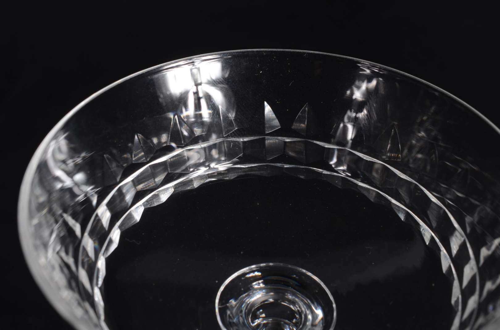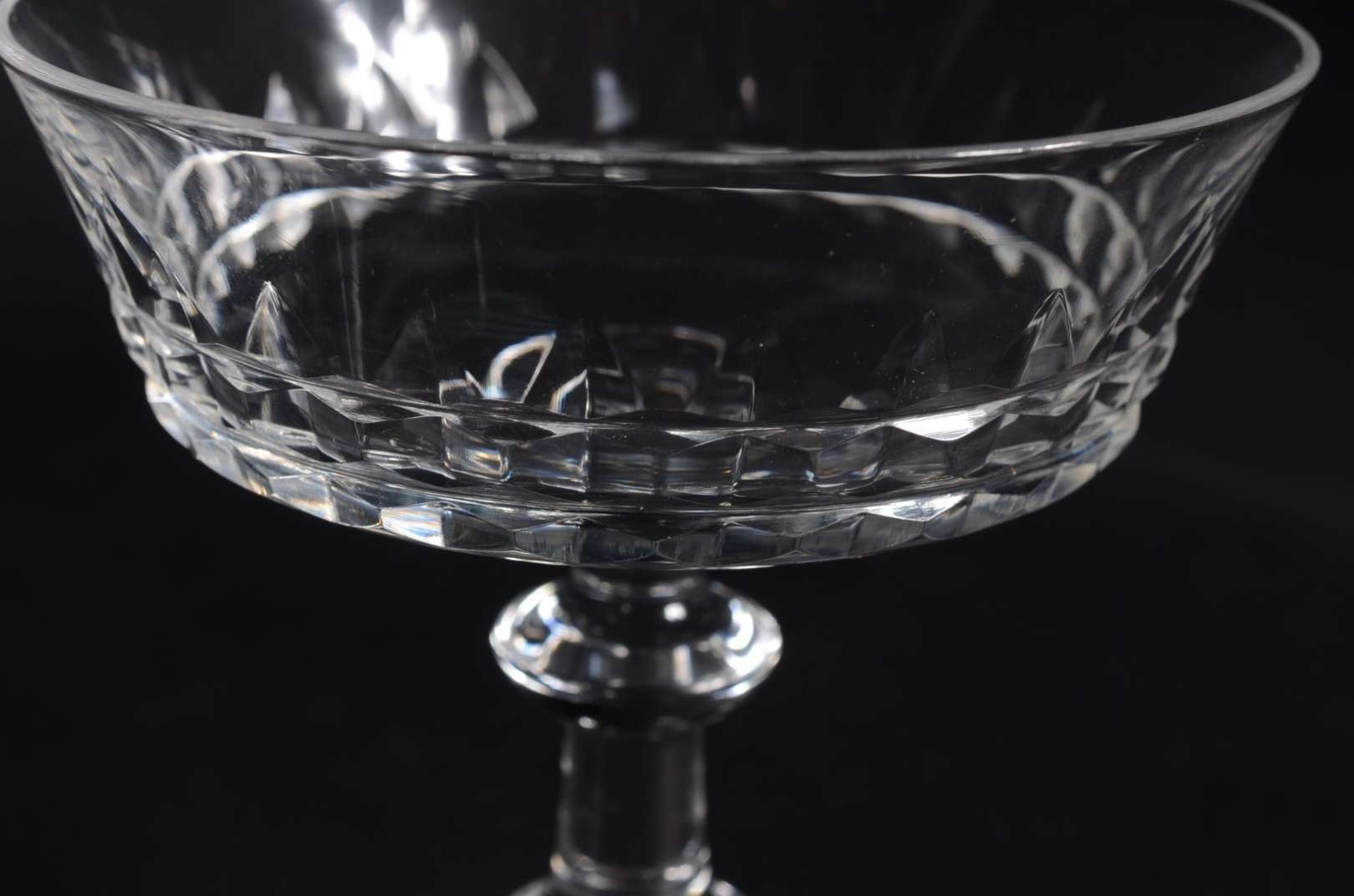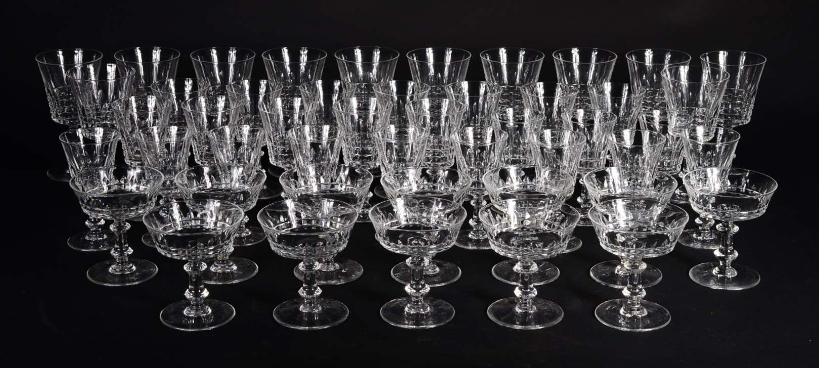 Parte de serviço de cristal europeu lavrado, sendo: 3 taças para vinho tinto, 7 para vinho branco e 6 para água (lige...
