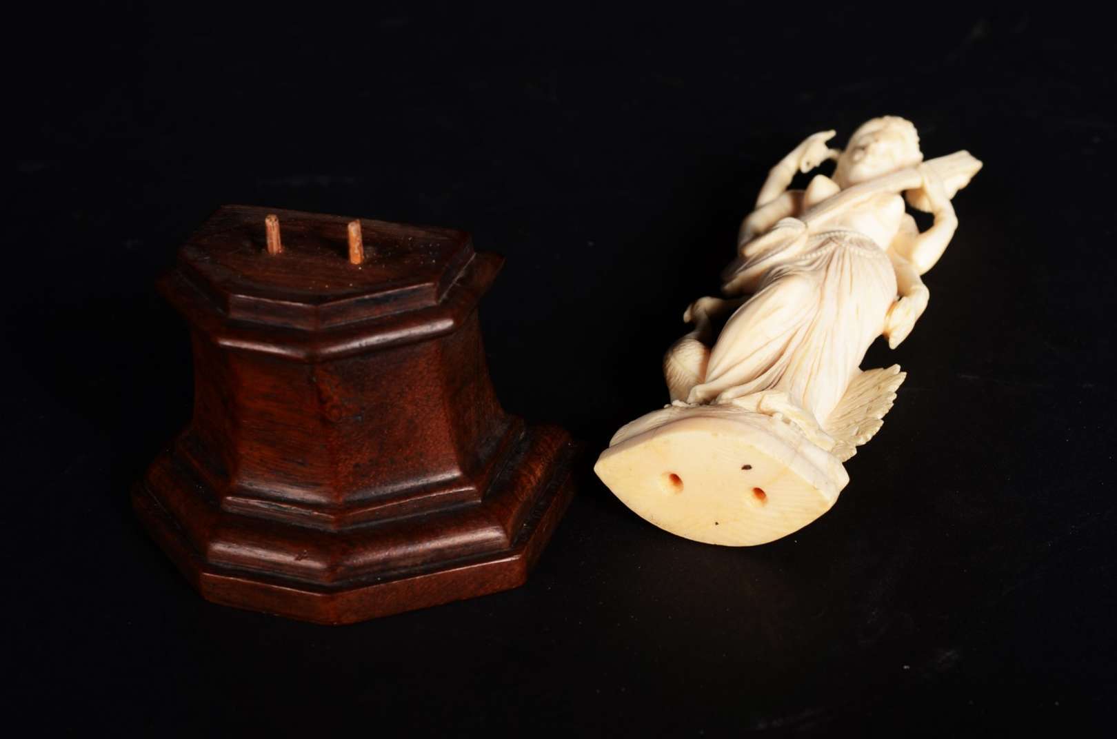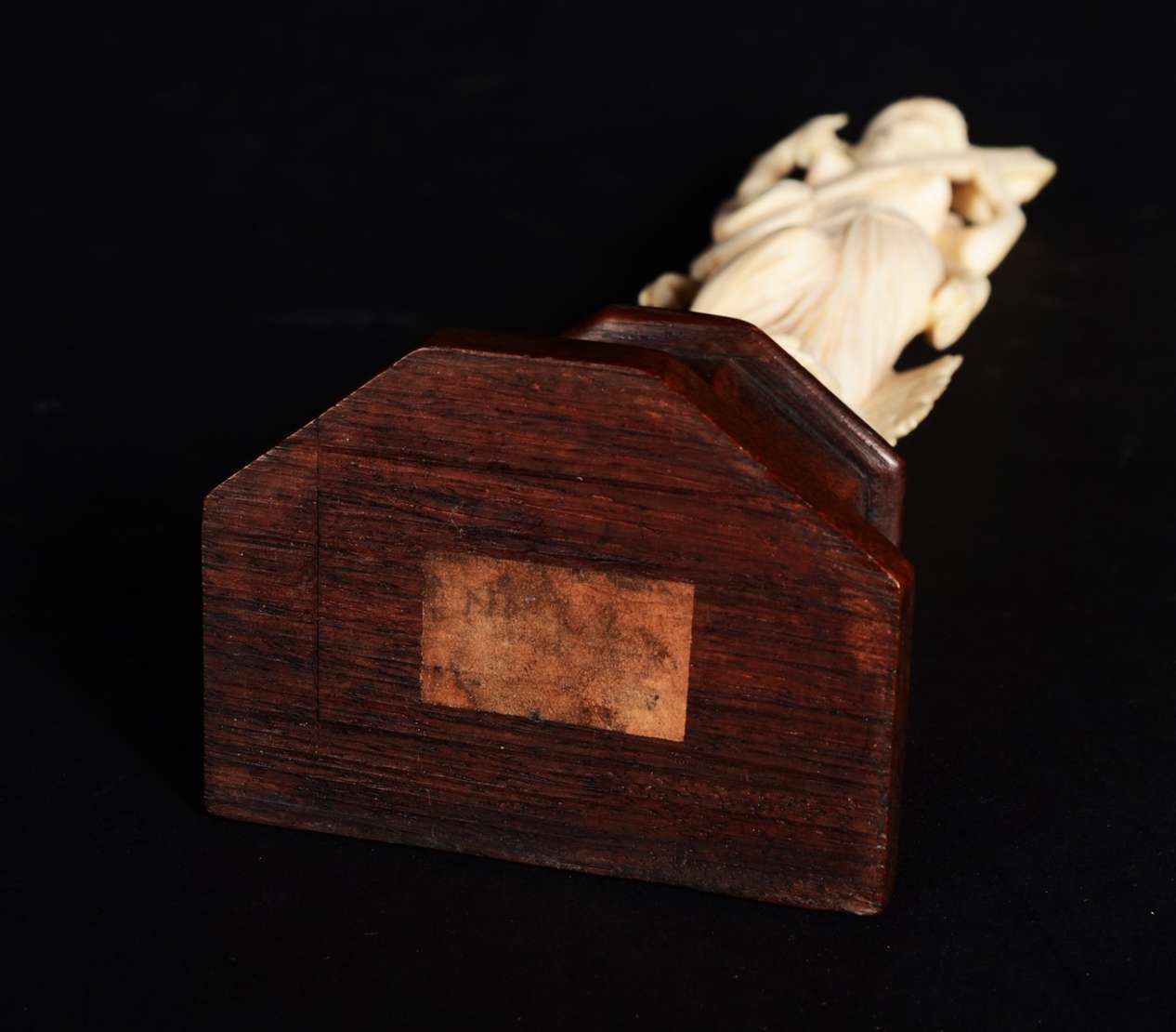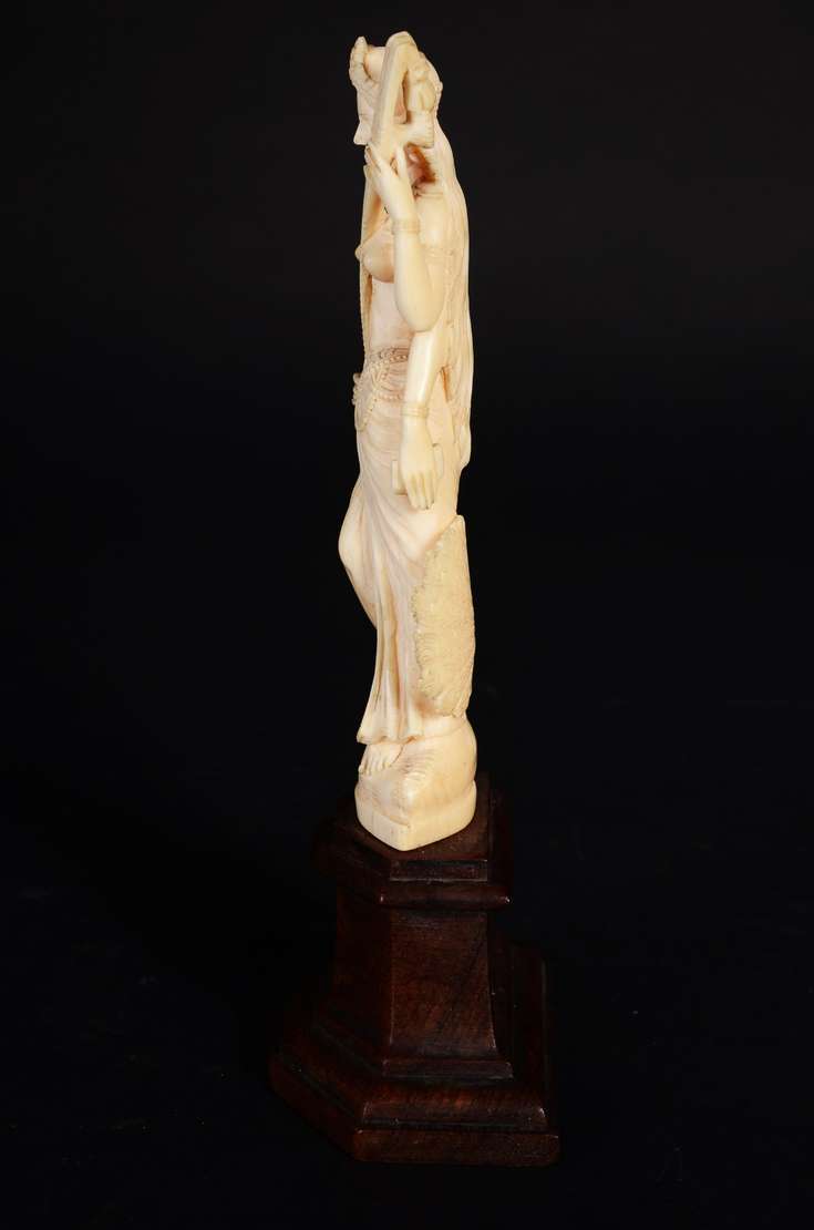 Escultura de marfim representando figura africana.