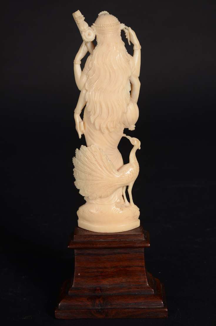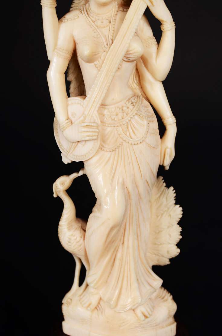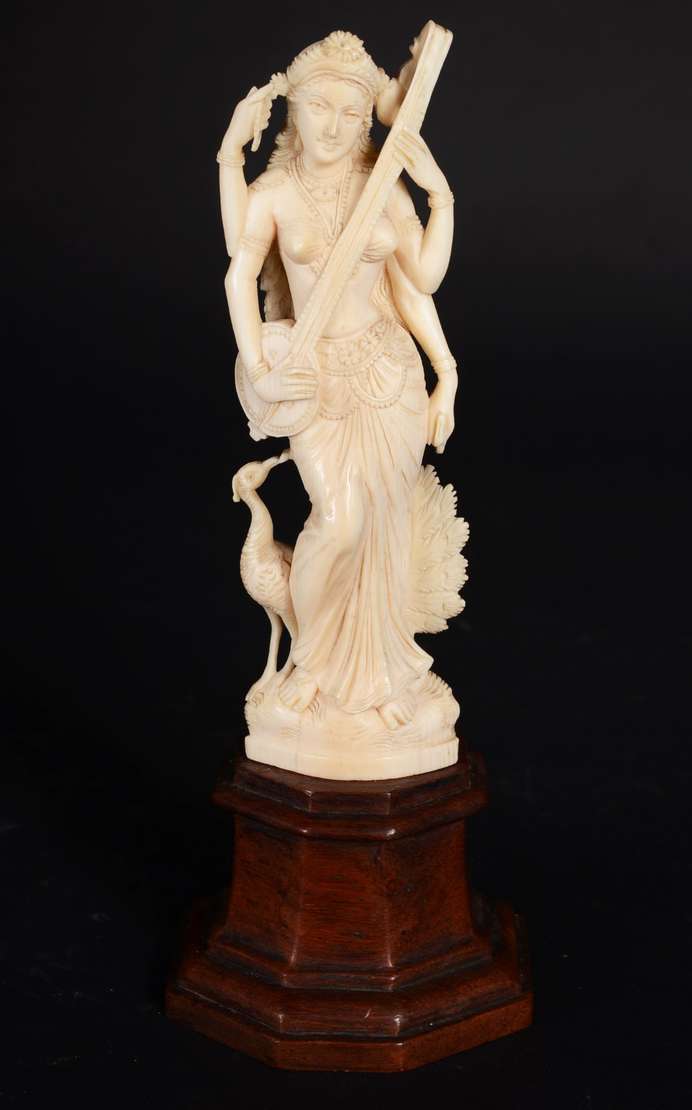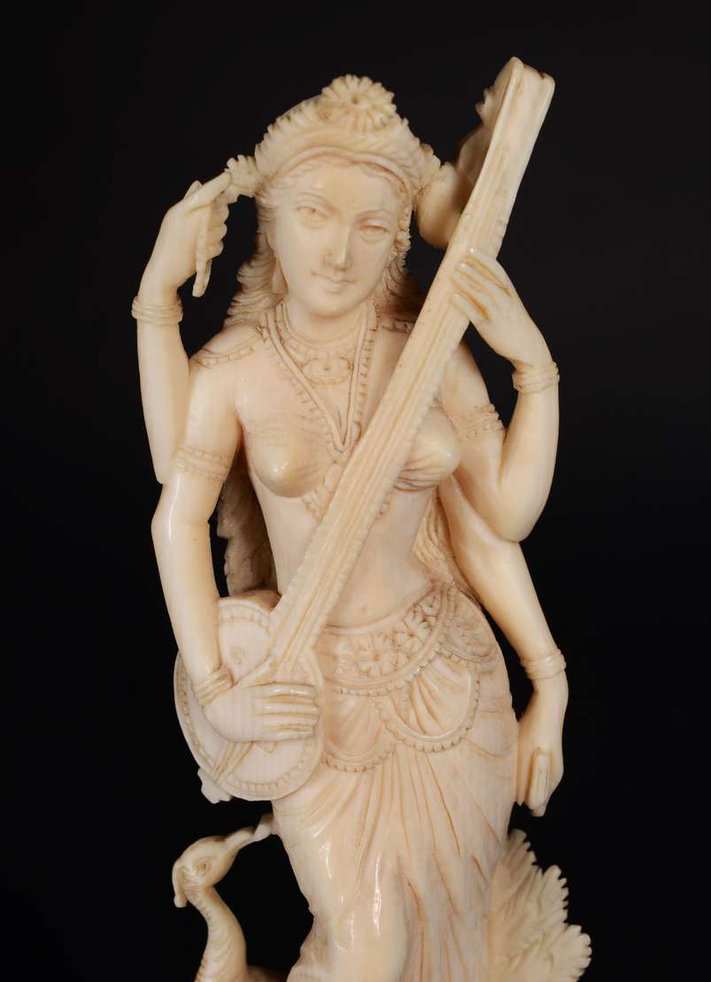 Escultura de marfim representando figura africana.