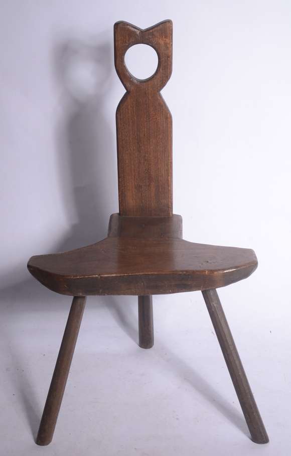 Pequena cadeira de madeira nobre com 3 pernas.