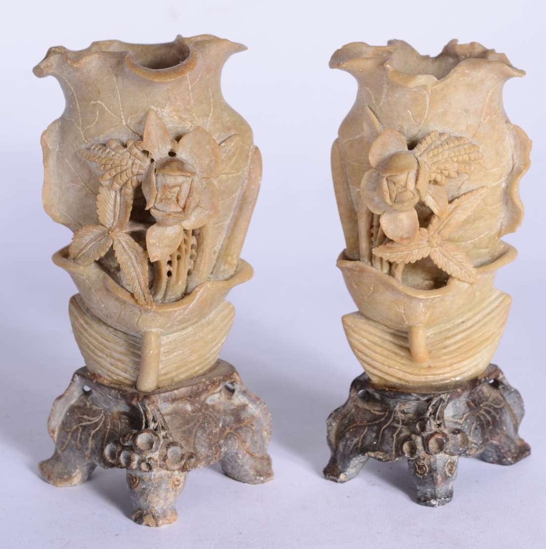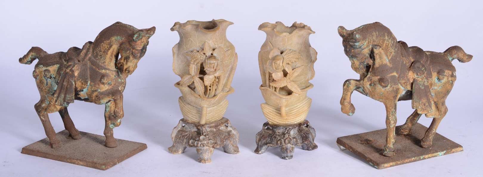 Cinco esculturas, sendo: 3 de pedras e 2 de cerâmica.
