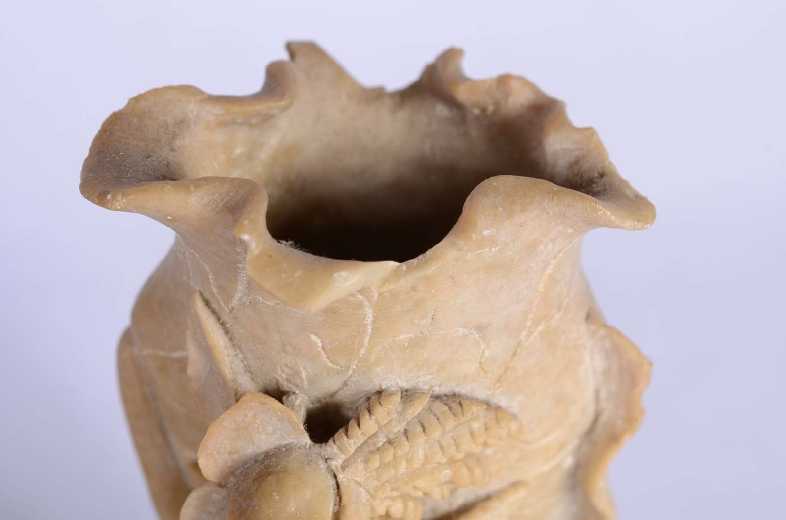 Escultura de marfim representando figura africana.