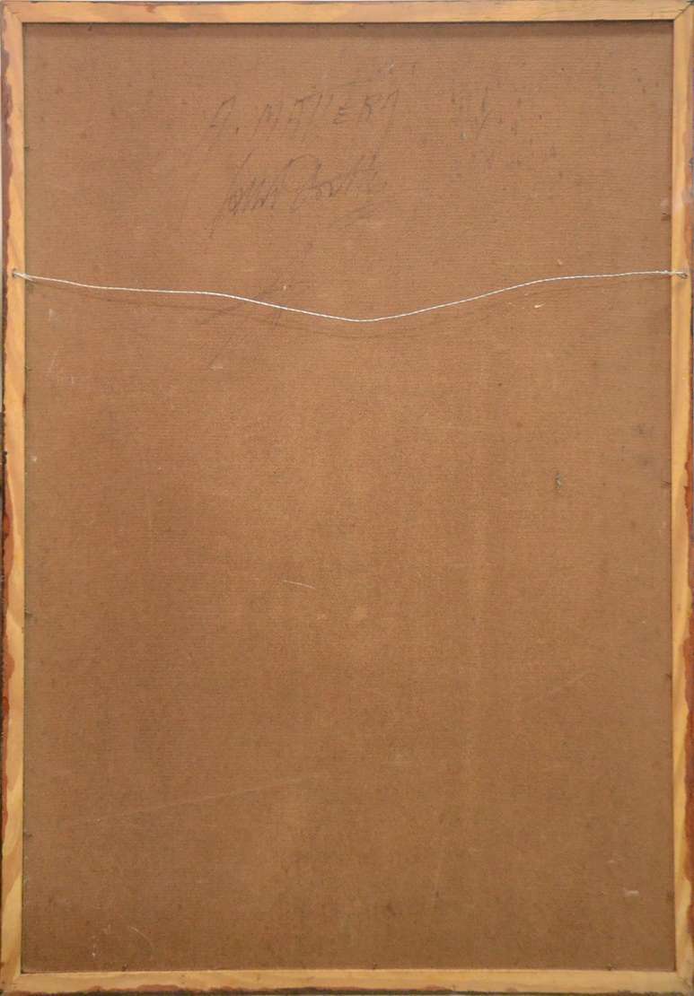 Óleo sobre tela. Datado 1956. Inscrição no verso: Medalha de bronze do Salão Nacional de Belas Artes, 1957.