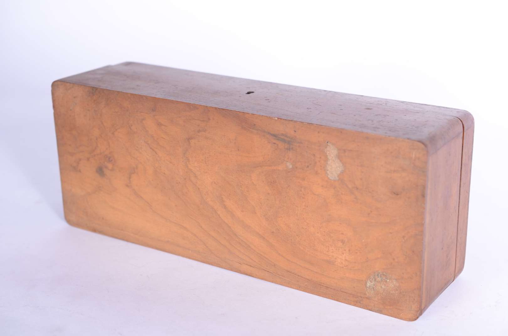 Relógio de parede feitio "oito", caixa de madeira. Com chave. Mostrador com desgastes. Funcionando.