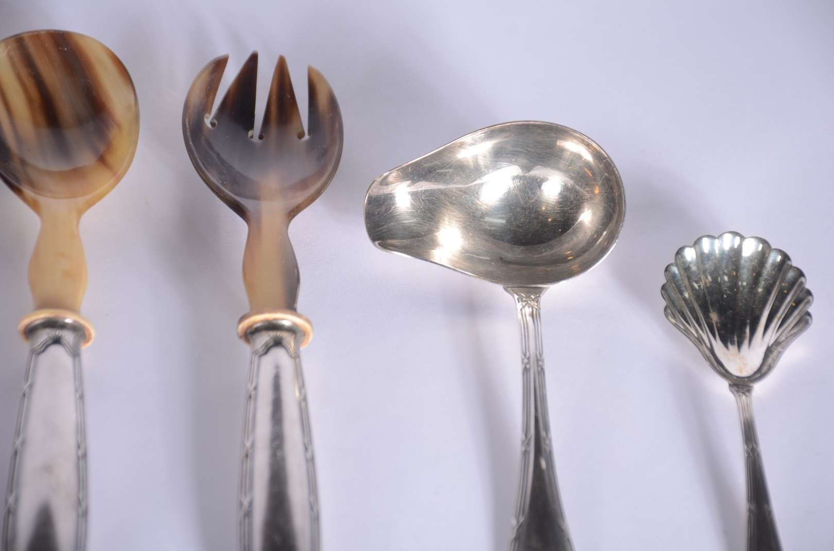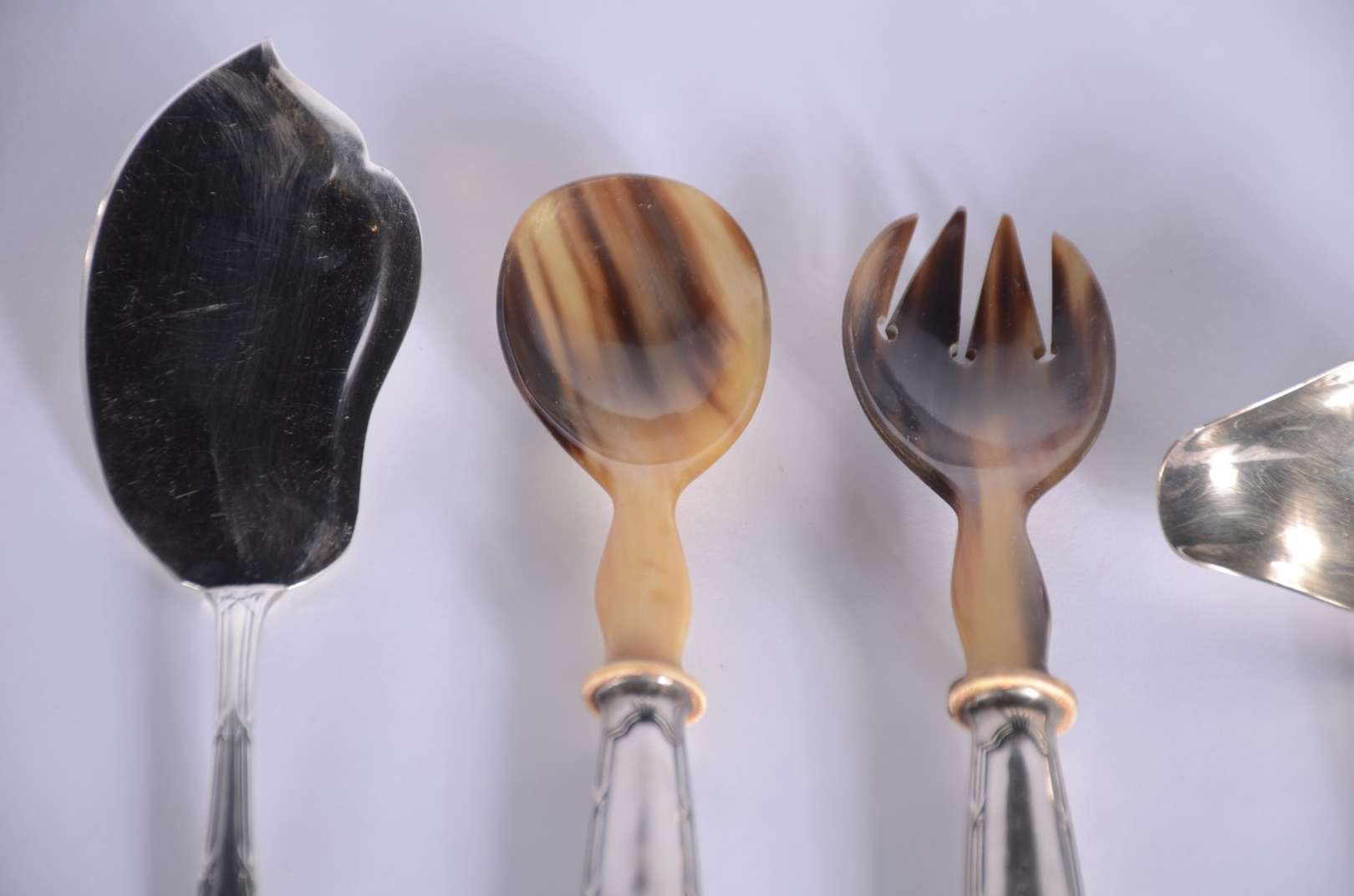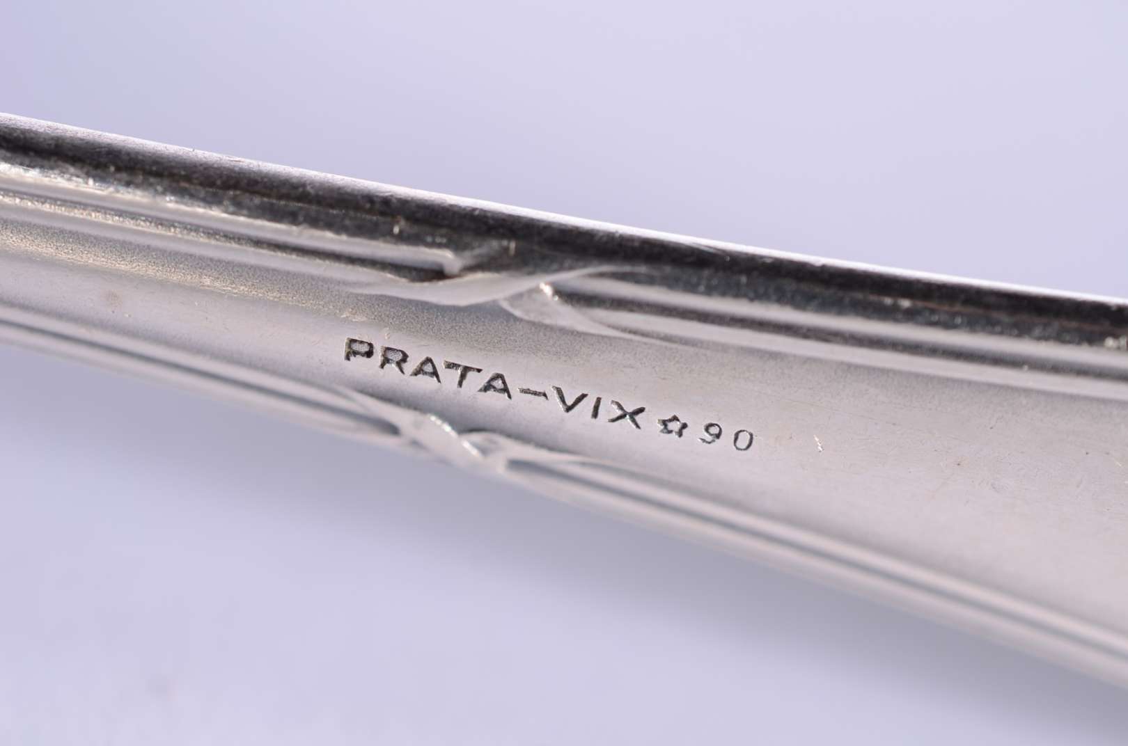 Duas peças de prata portuguesa, contraste Águia, 1º título, prateiro Mergulhão 916, sendo: leiteira com alça de madei...