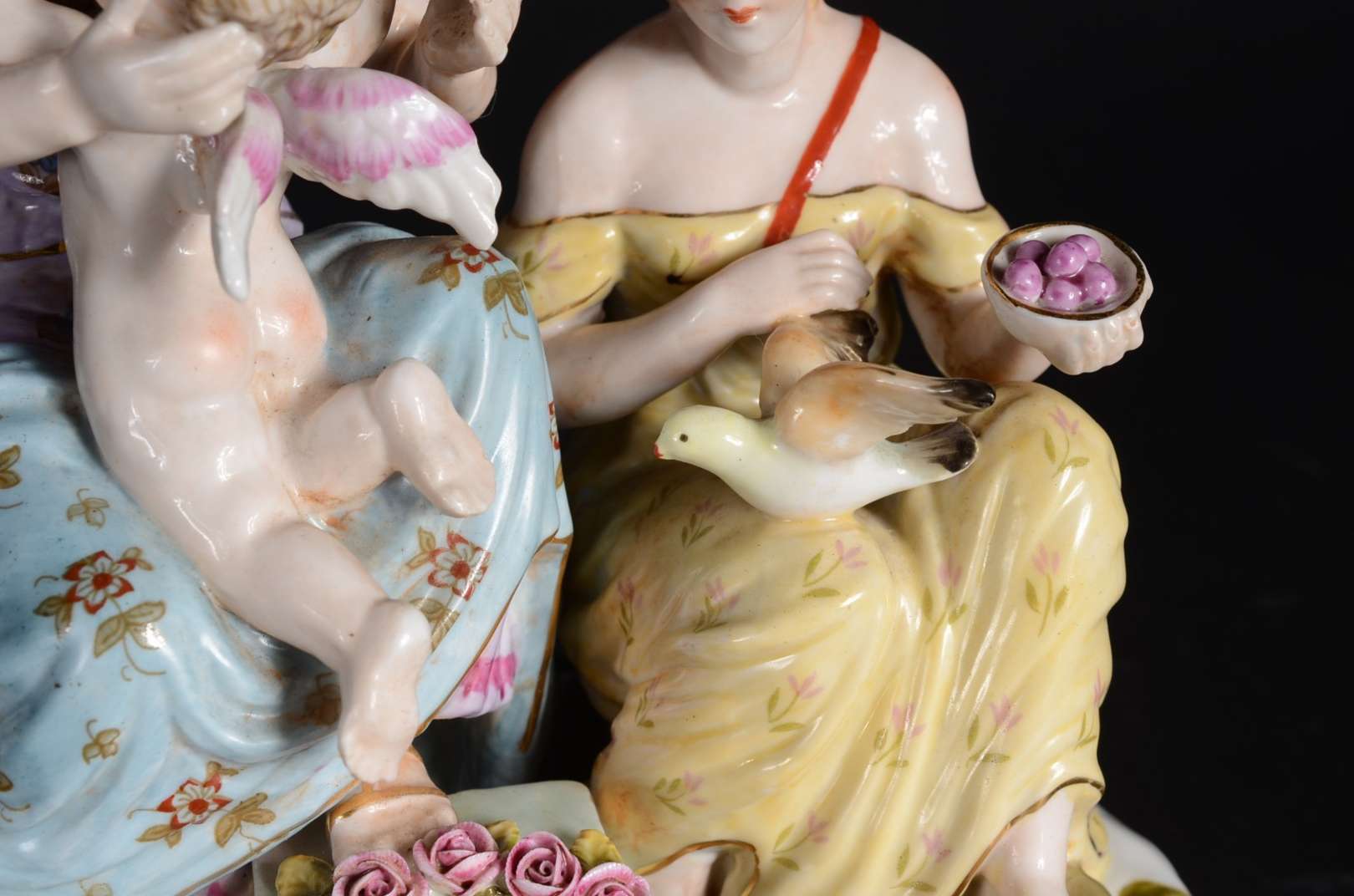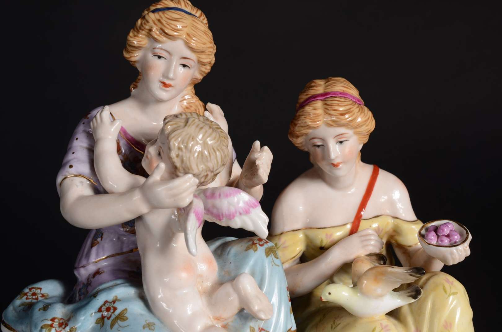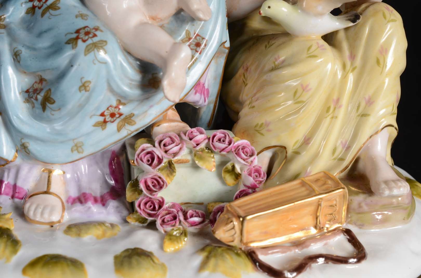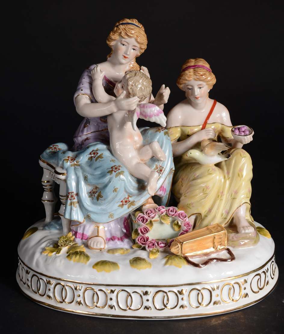 Estatueta de porcelana europeia policromada representando figura masculina tocando "gaita", marcada na base.