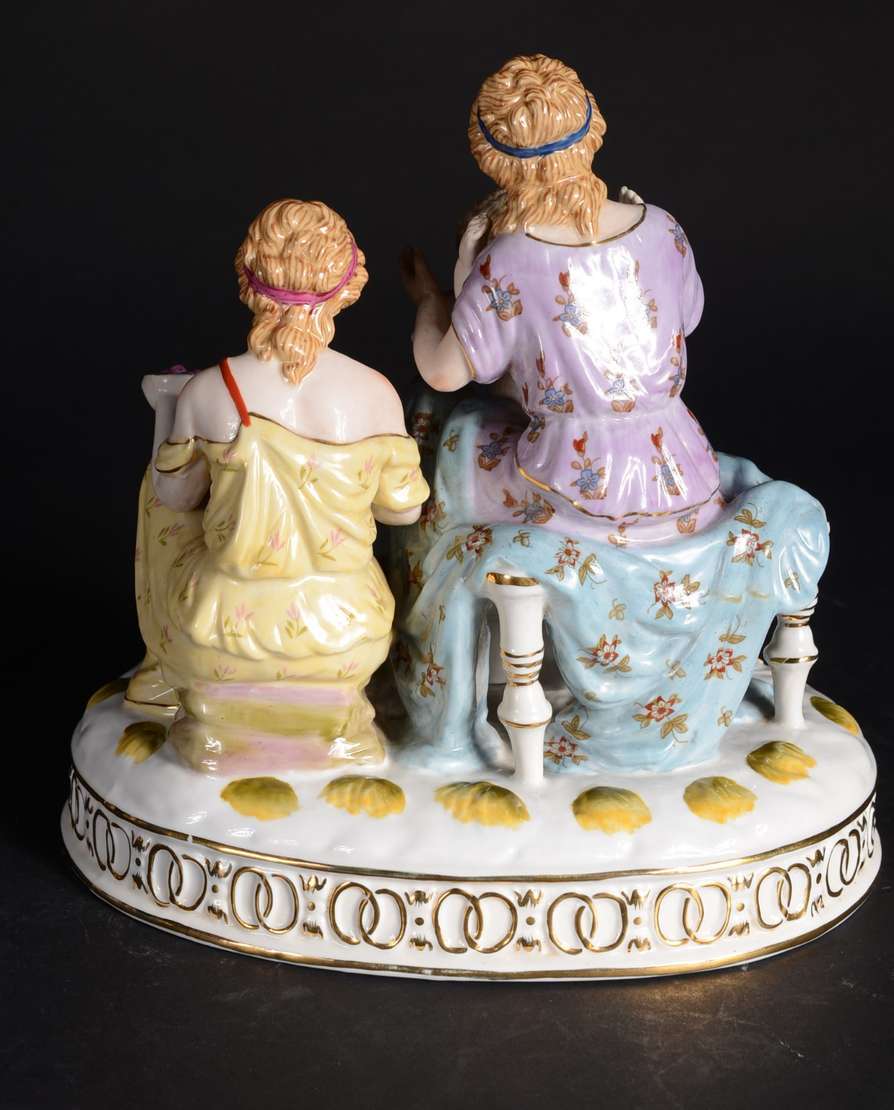 Duas esculturas de porcelana Royal Doulton policromada representando moças.