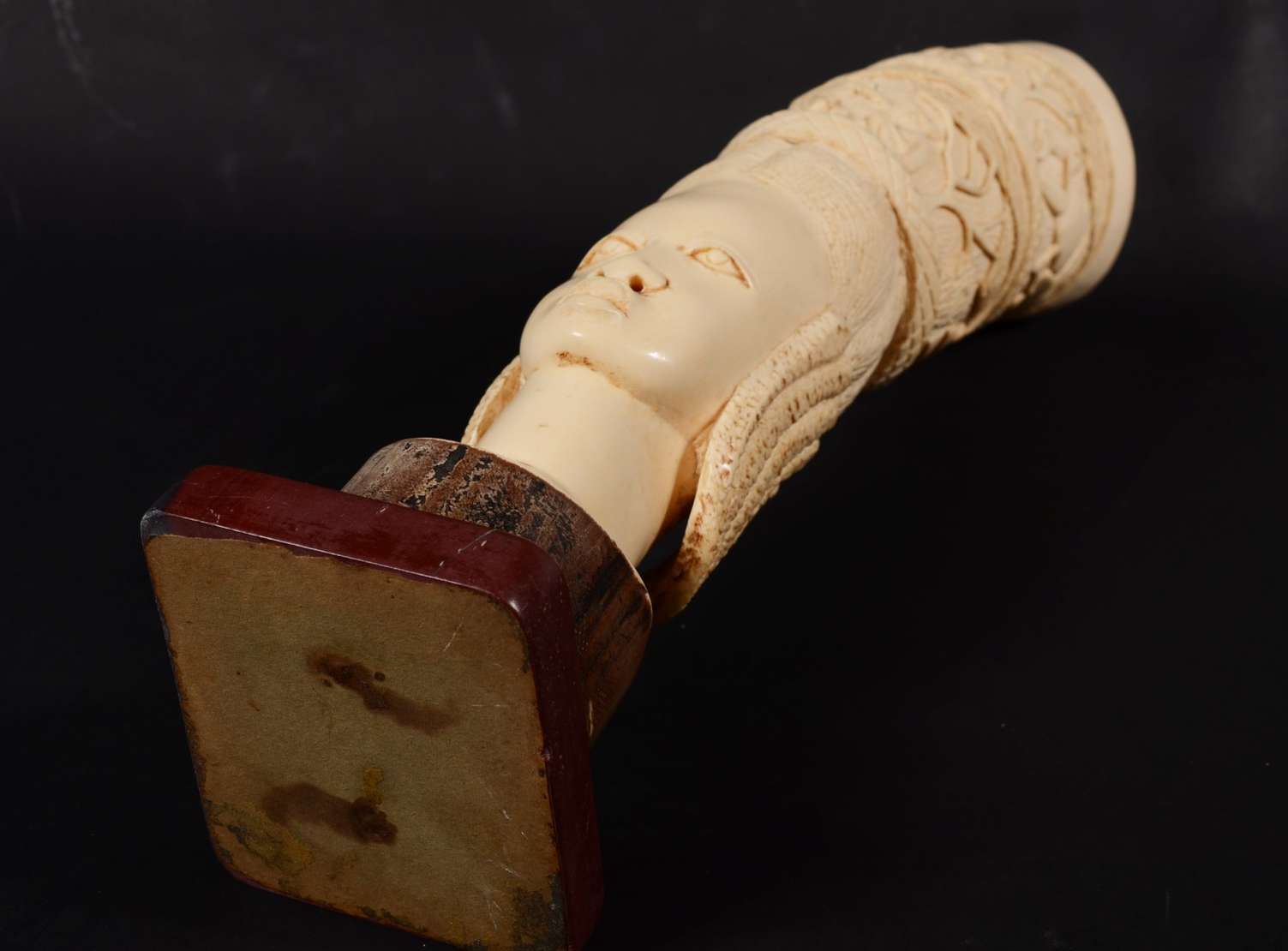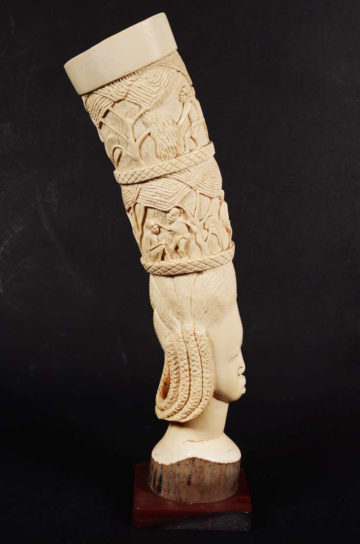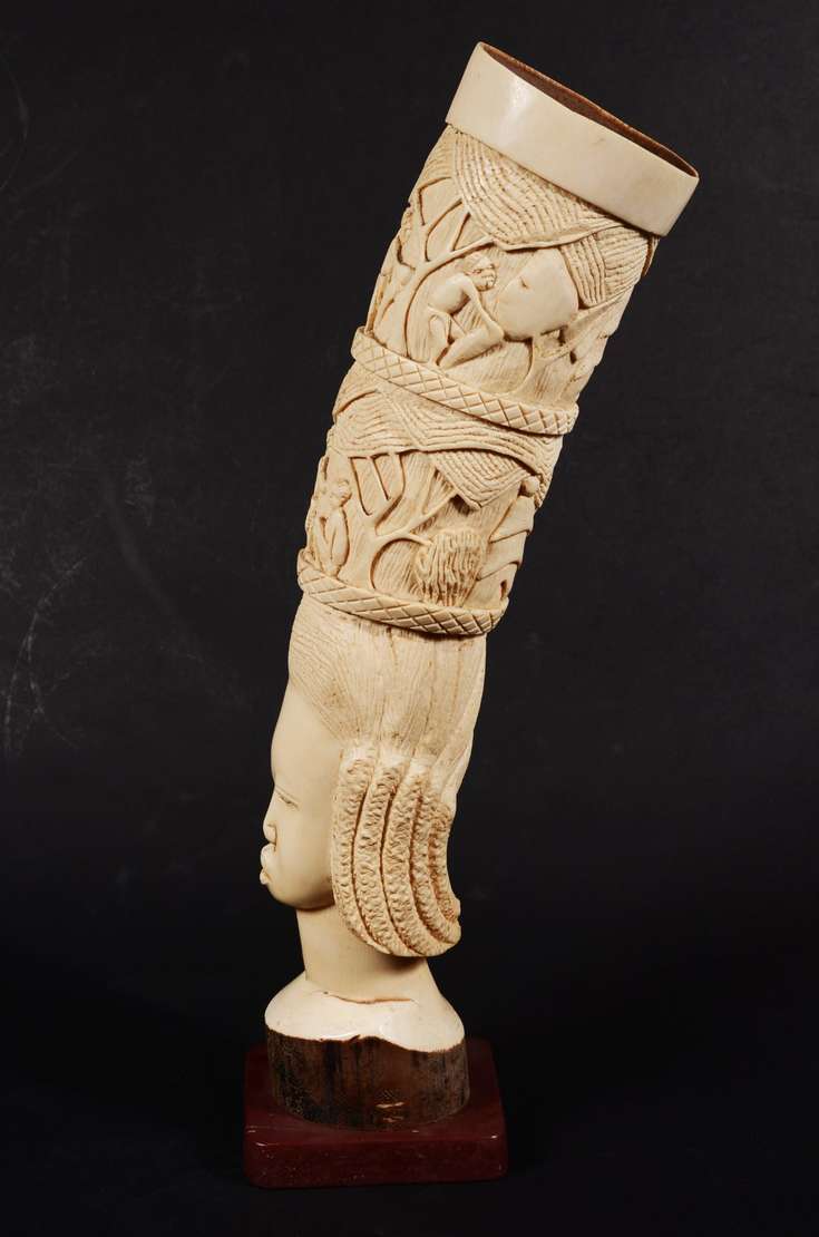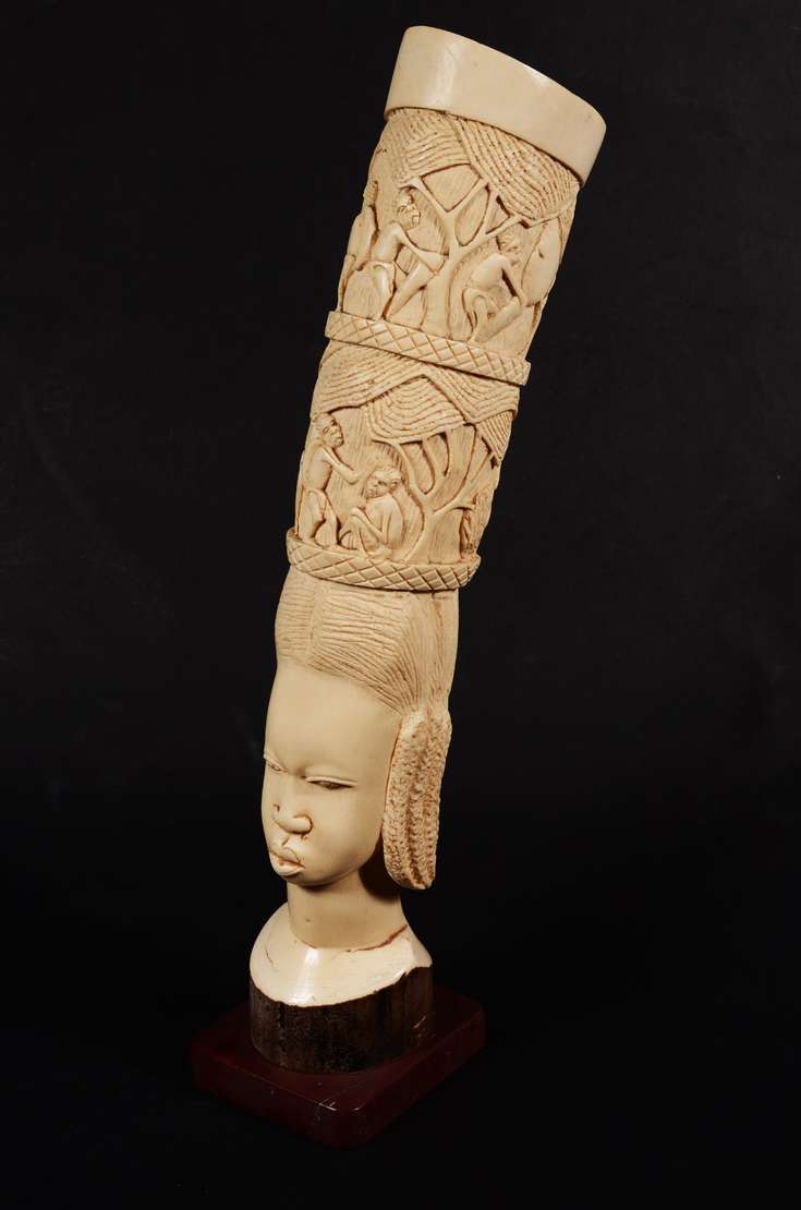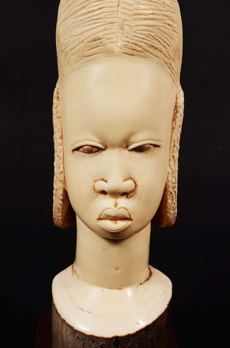 Escultura em ébano representando figura feminina africana.