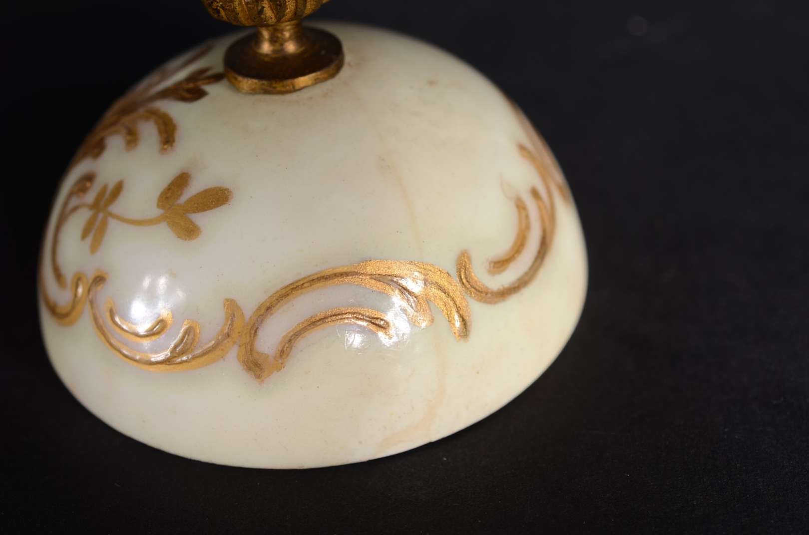 Vaso de vidro com guarnição de metal com guirlandas.