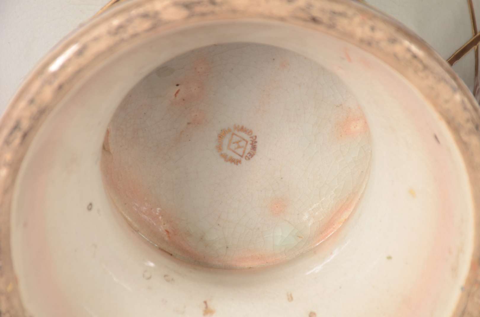 Vaso de opalina na cor rosa com flores em policromia e friso dourado (desgastes).