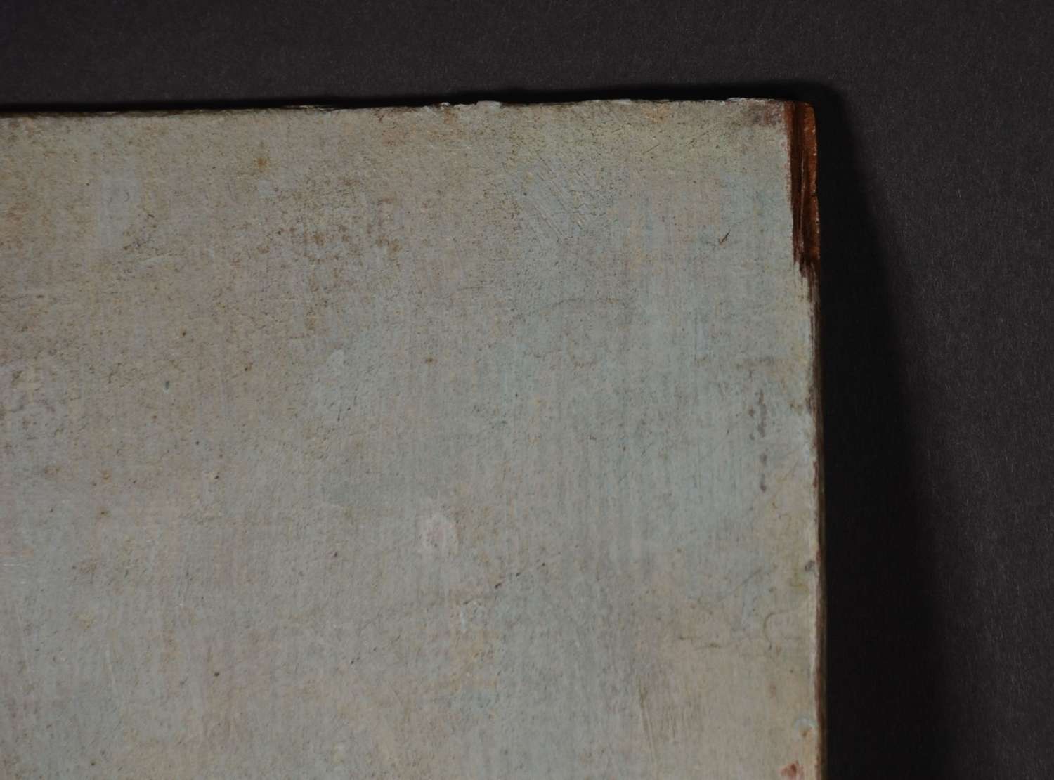 Óleo sobre madeira. Pequenas falhas na tinta.