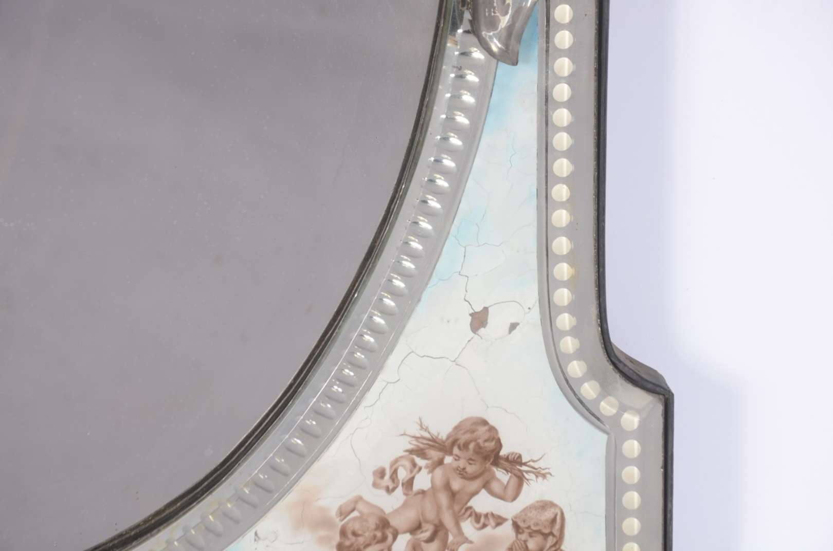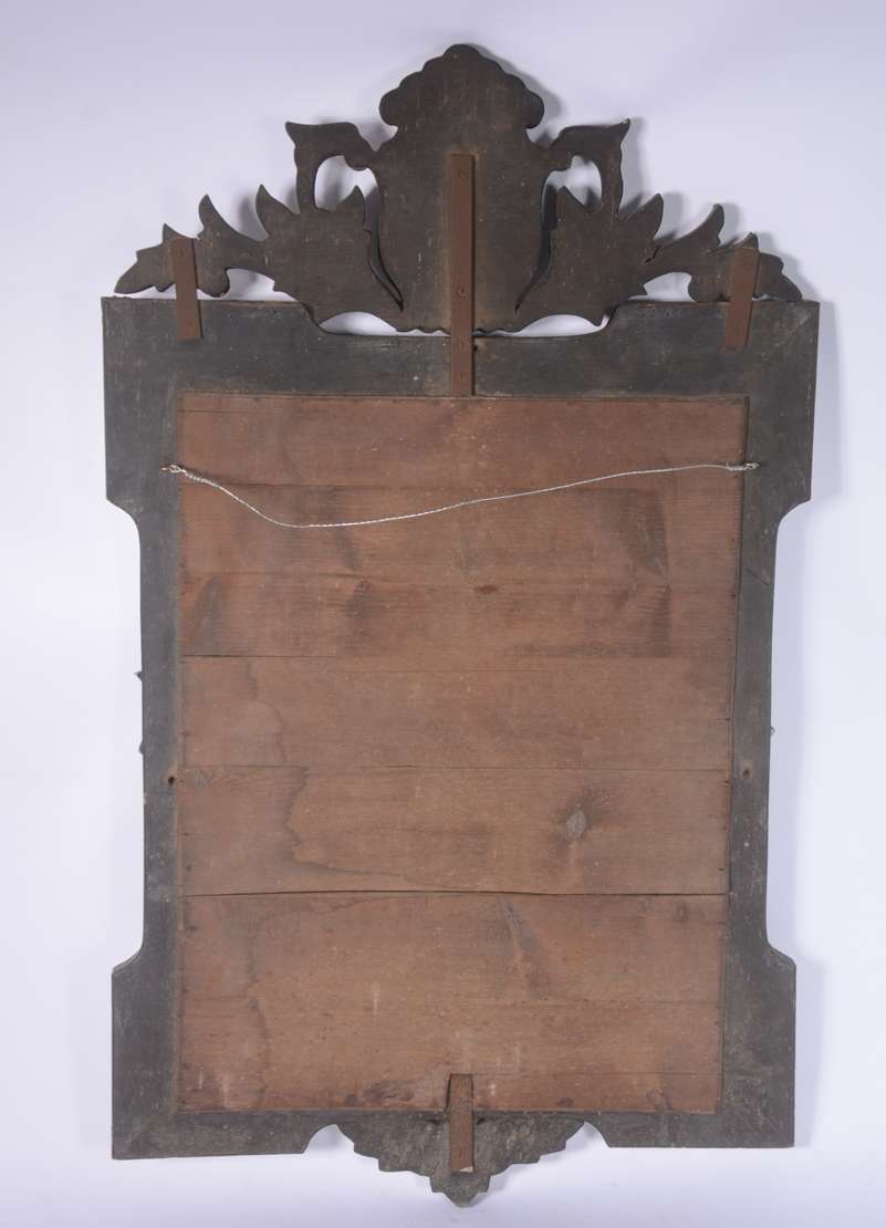 Espelho feitio oval com moldura de madeira entalhada.