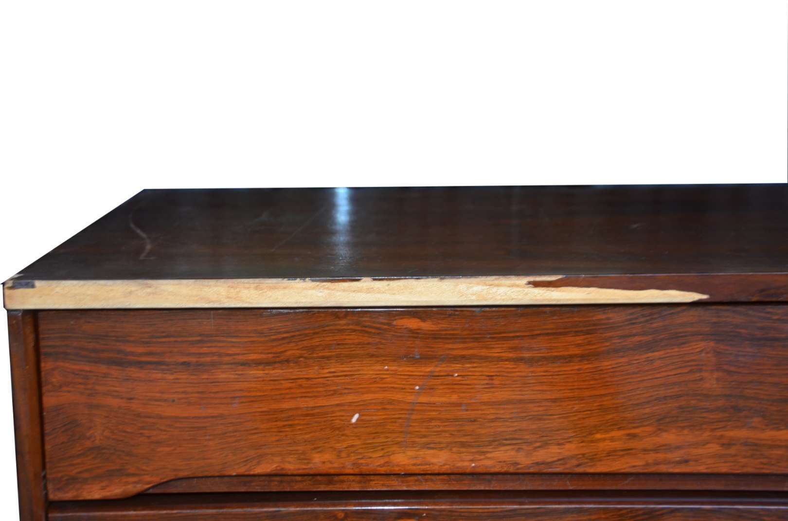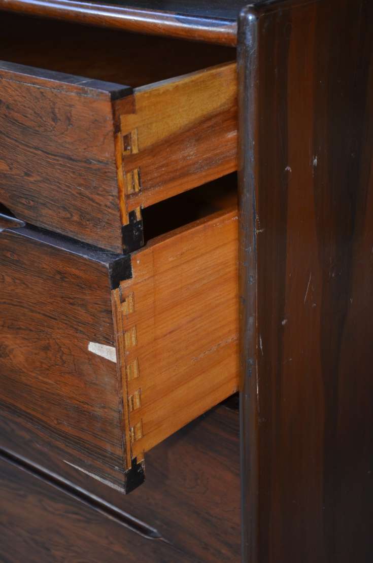 Cômoda de madeira nobre, 2 gavetões e 2 gavetas, pernas retas. Com desgastes.