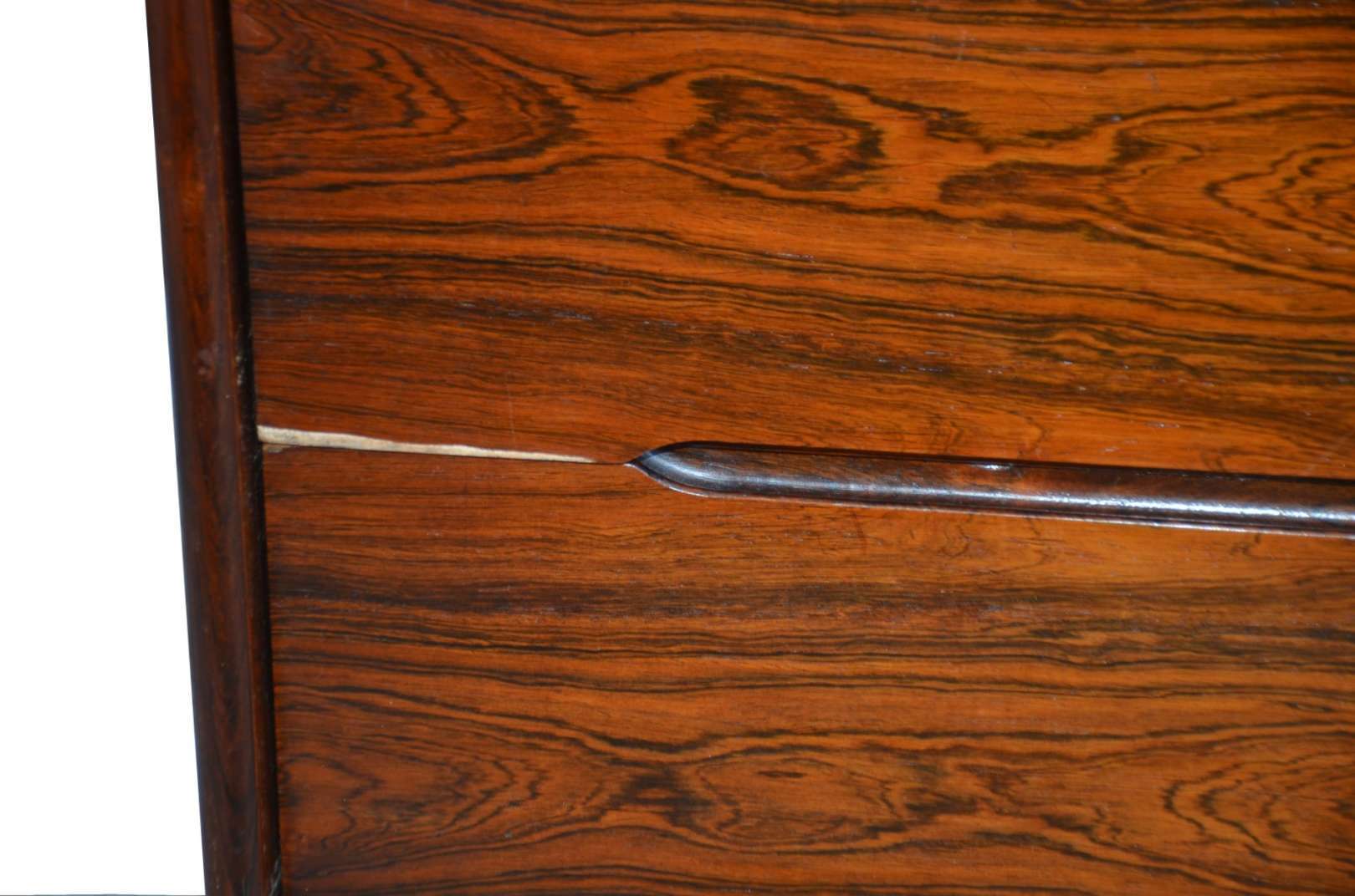 Móvel secretária no estilo "Abattant" de madeira nobre, tampo articulado forrado em feltro verde na parte interna, ga...