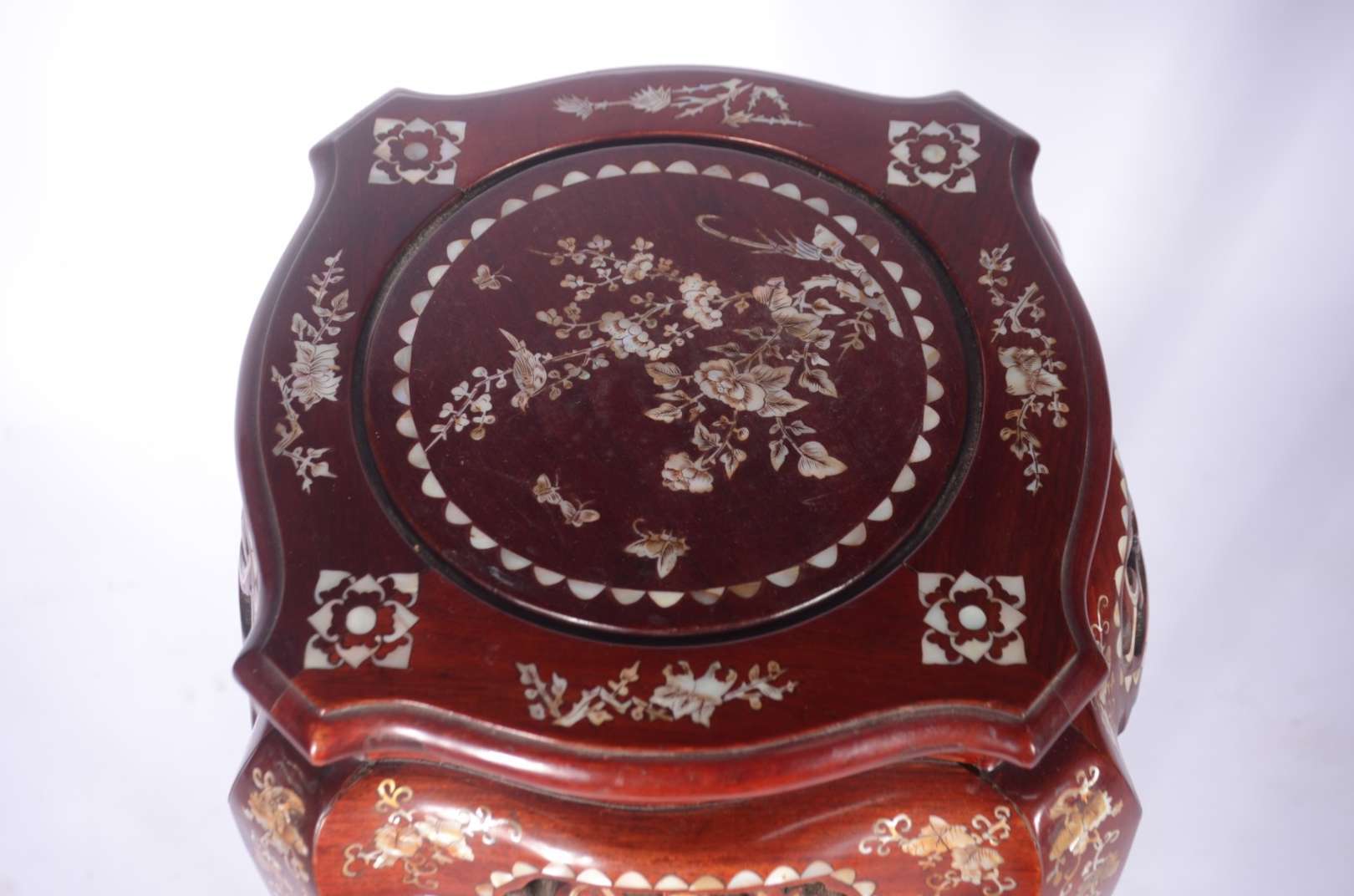 Peça decorativa de porcelana oriental decorada com figura de animal estilizado e vegetação em tons de azul e branco, ...
