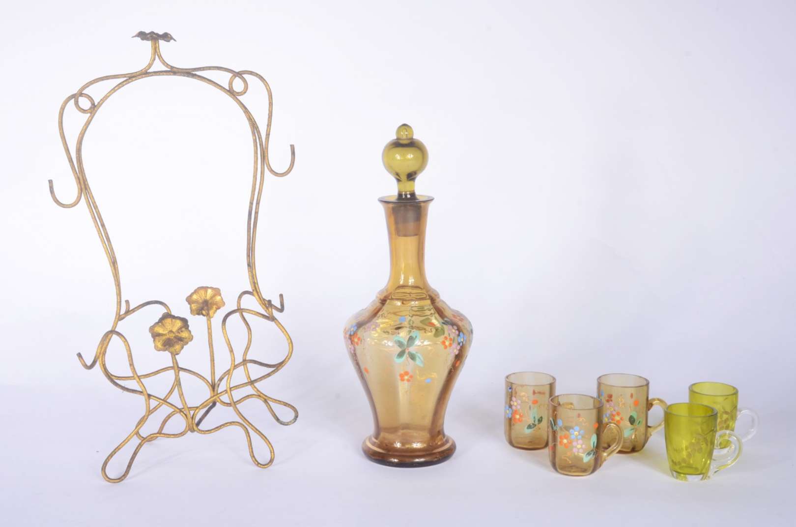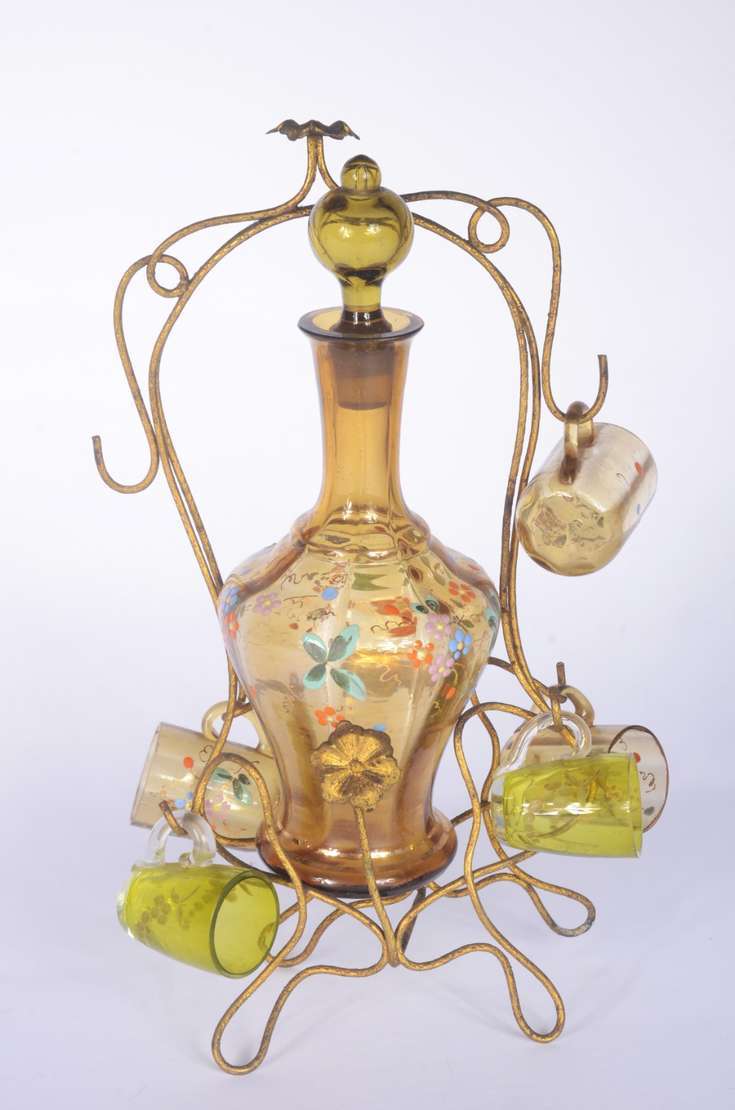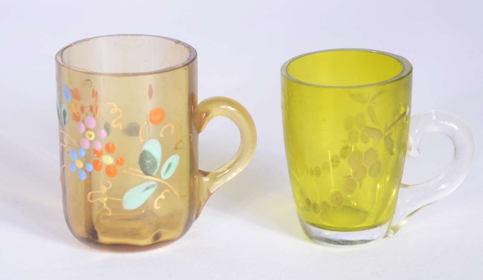 Quatro canecas para cerveja de cerâmica decoradas em policromia.
