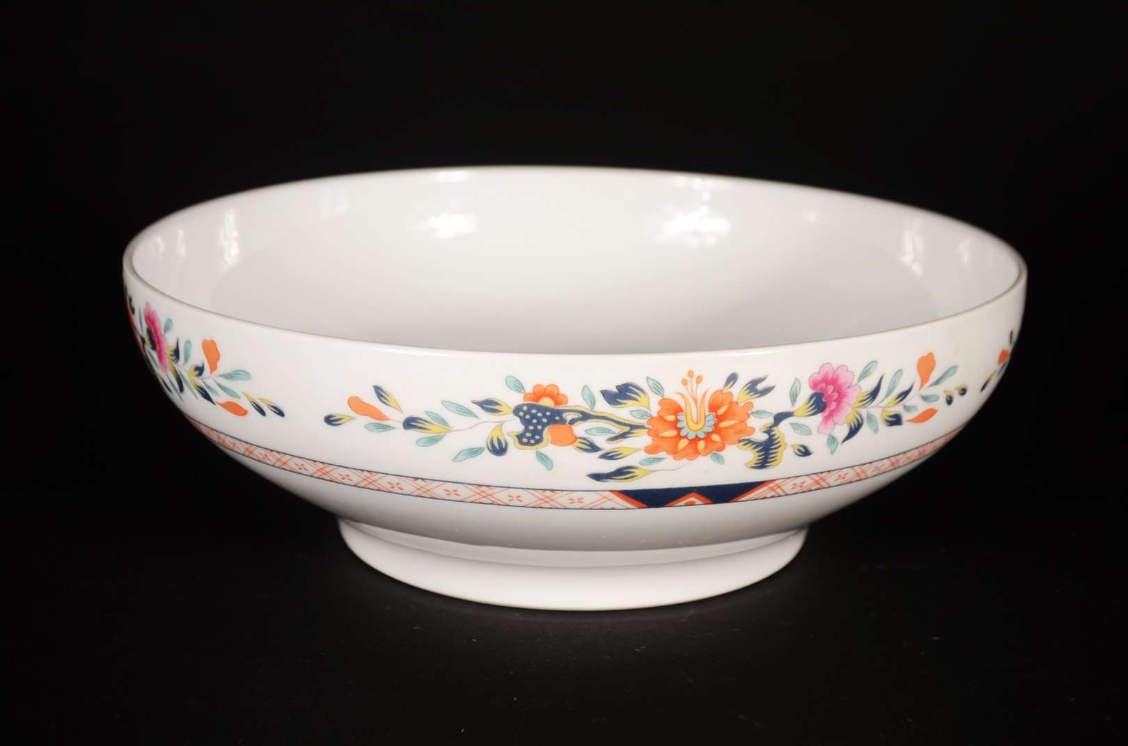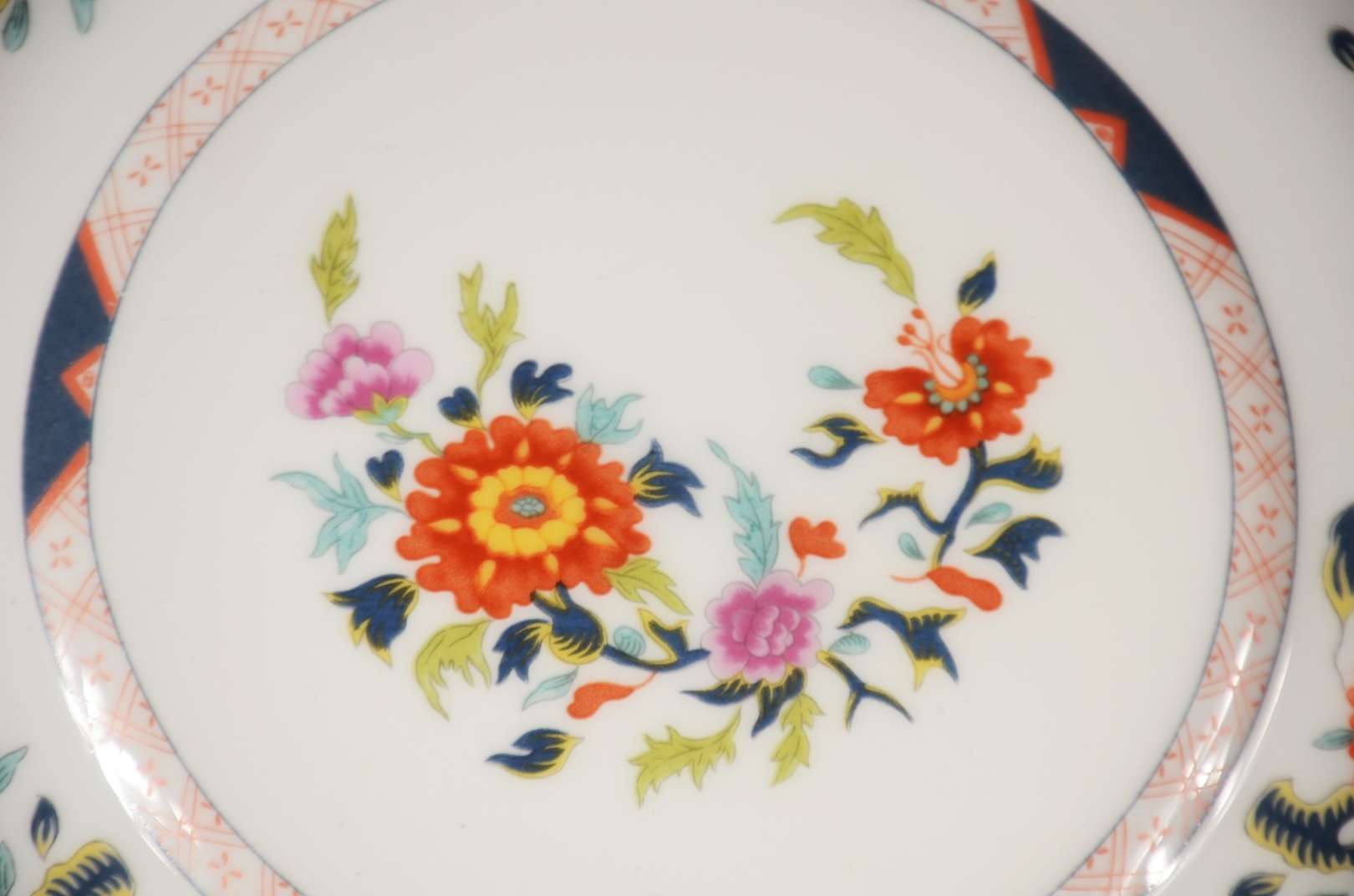Serviço de jantar de porcelana chinesa, decoração floral azul, composto de: 7 pratos rasos, 14 pratos de sobremesa (3...