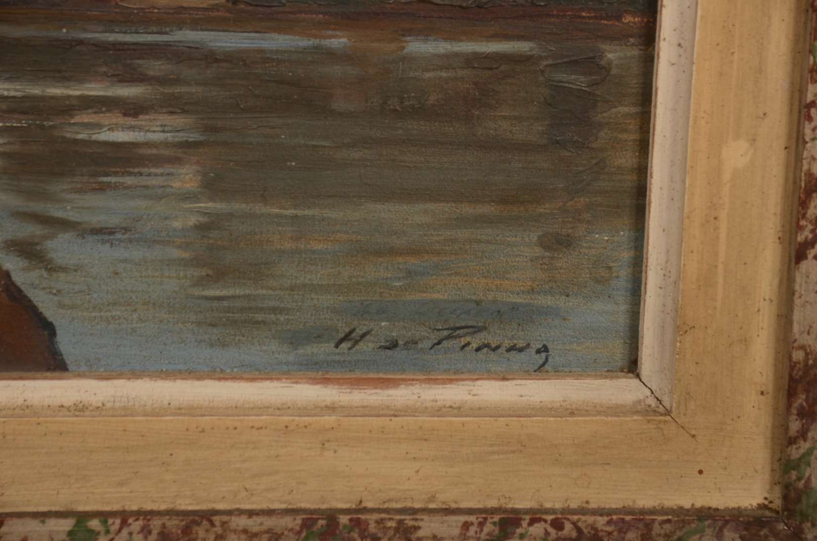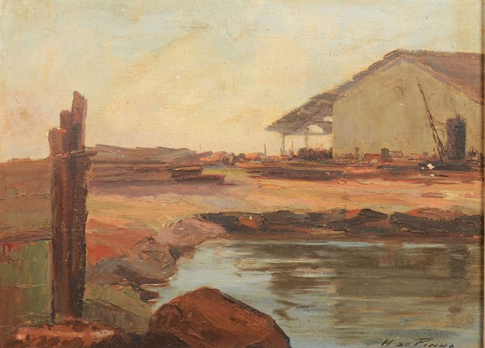 Óleo sobre madeira. Datado 1942. Canto com desgastes na madeira.