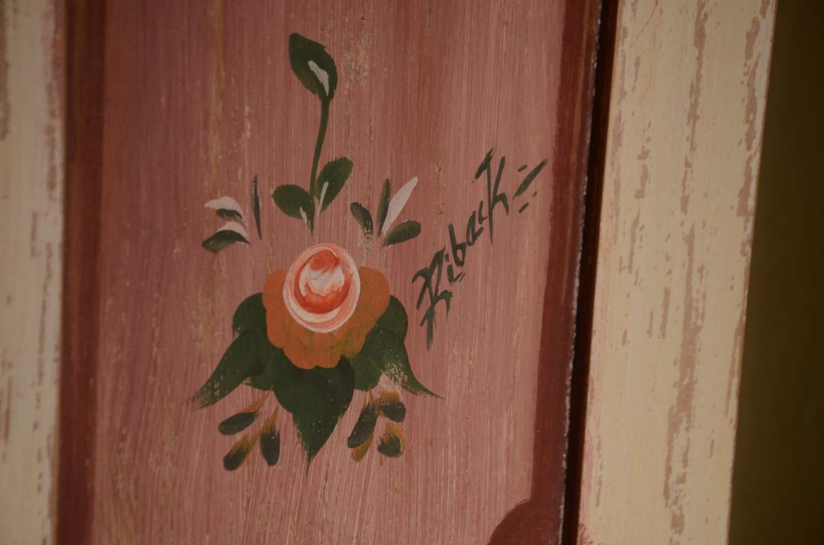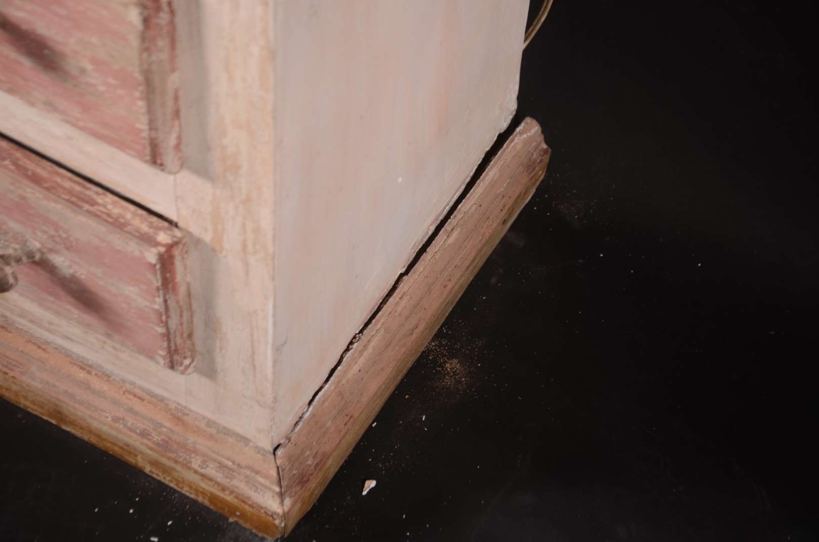Cômoda de madeira nobre, 2 gavetões e 2 gavetas, pernas retas. Com desgastes.