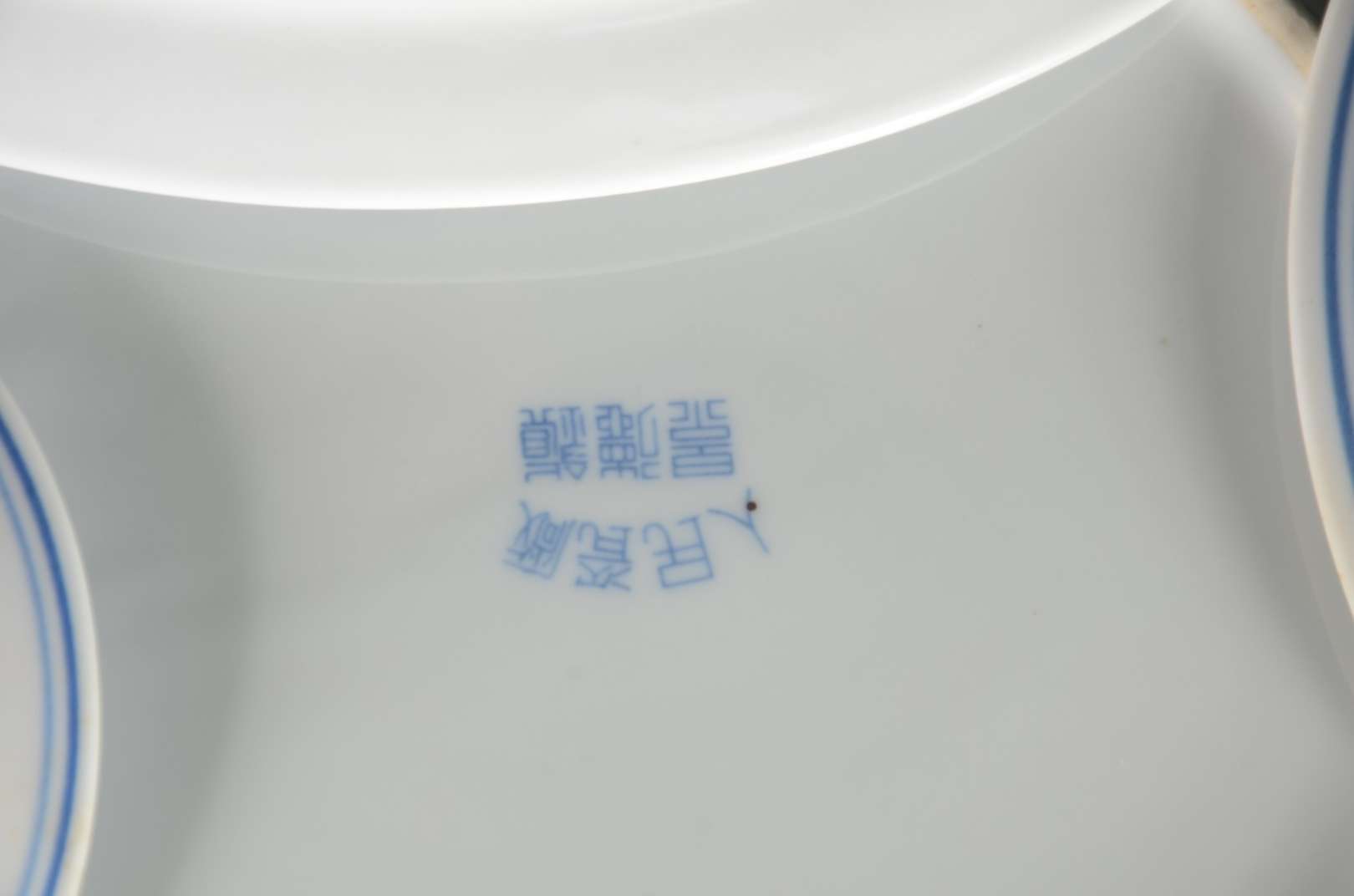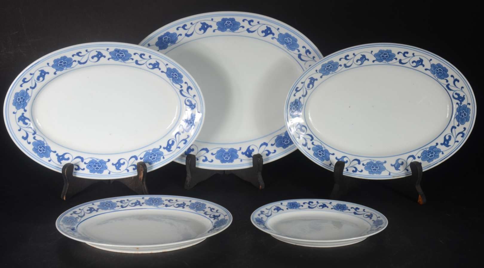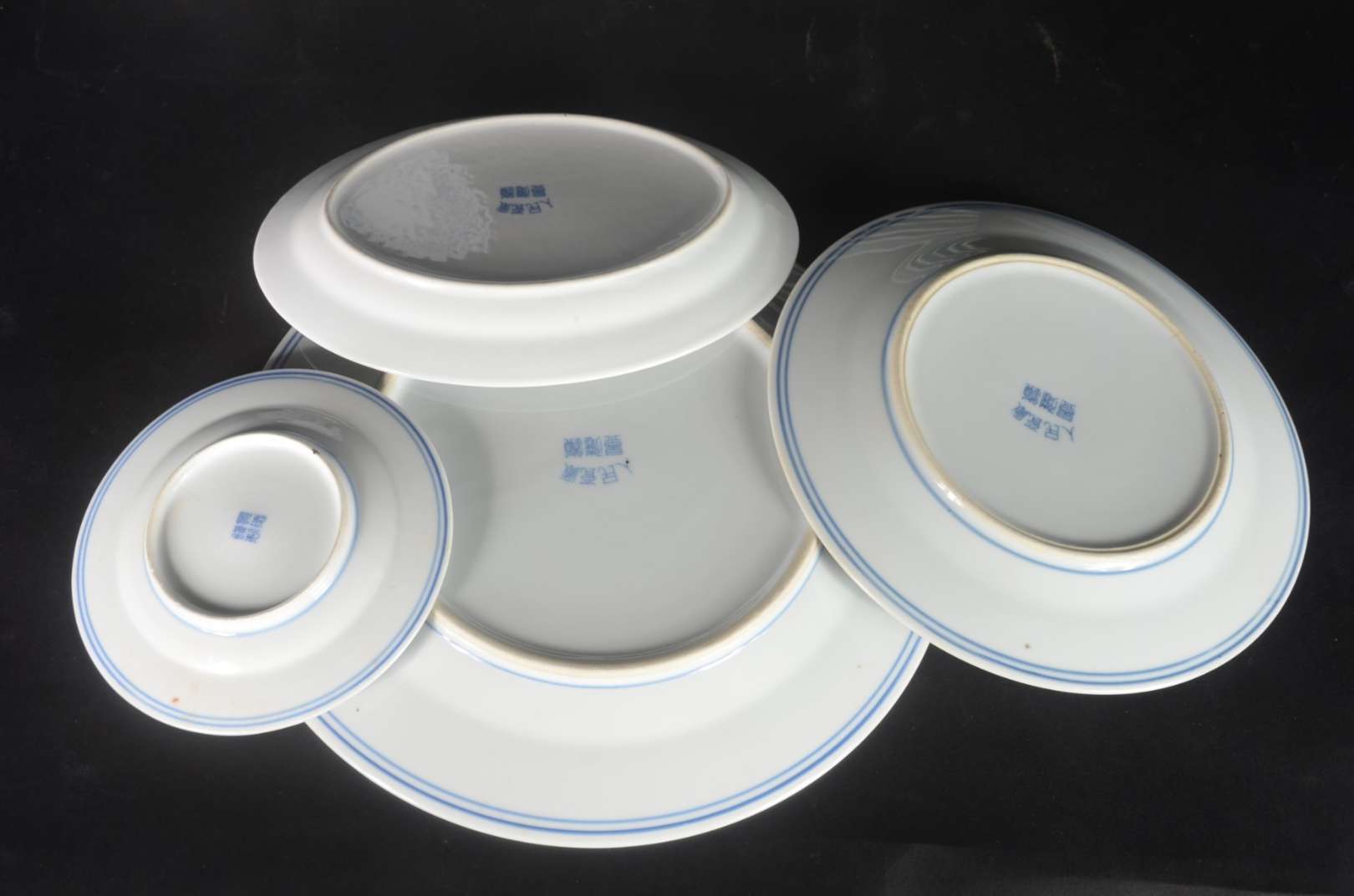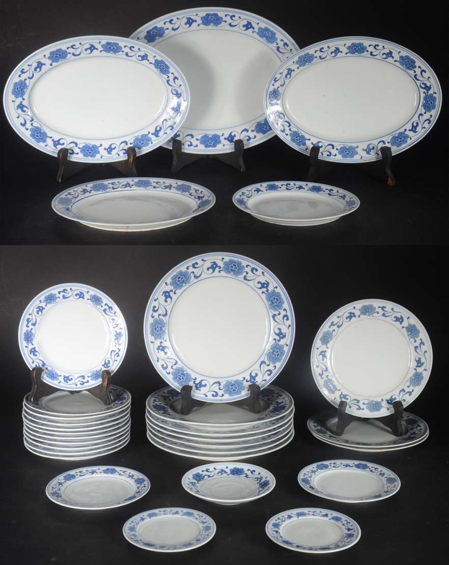Serviço de jantar de porcelana chinesa, decorados com galos em policromia, composto de: 24 pratos rasos, 24 pratos pa...