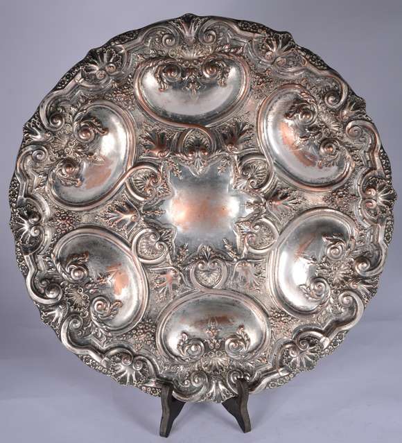 Salva de prata prateiro Correa, contraste 833 mls com grade vazada. Peso da prata: 640 g. (Por motivos de segurança a...