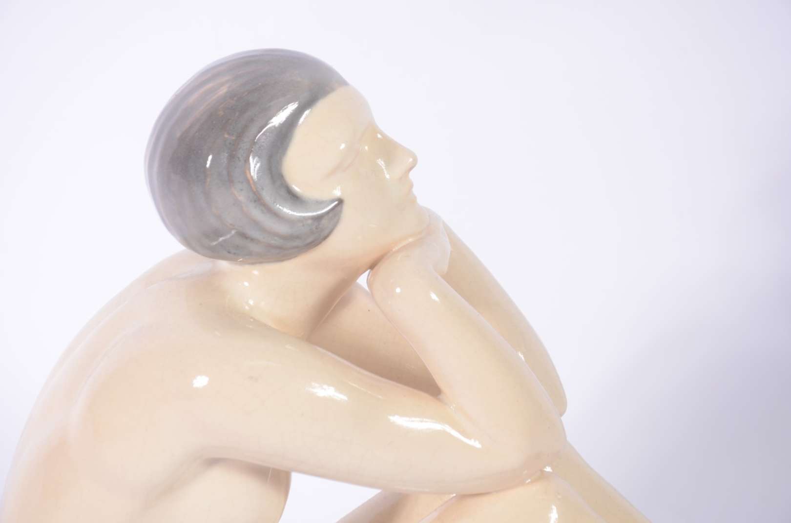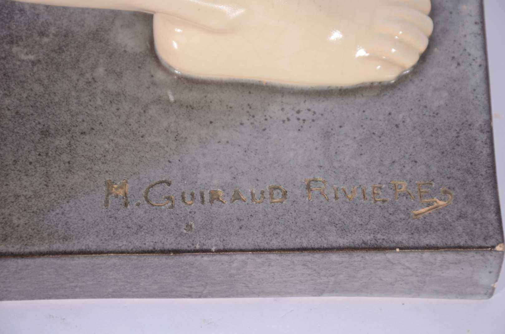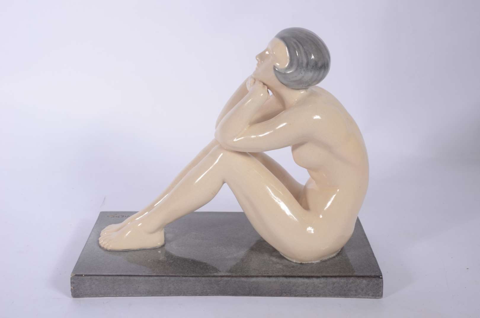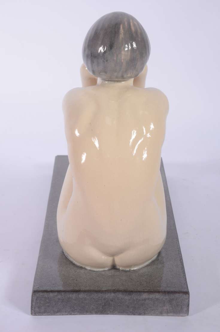 Escultura Art Deco de faiança policromada, marcas na base.