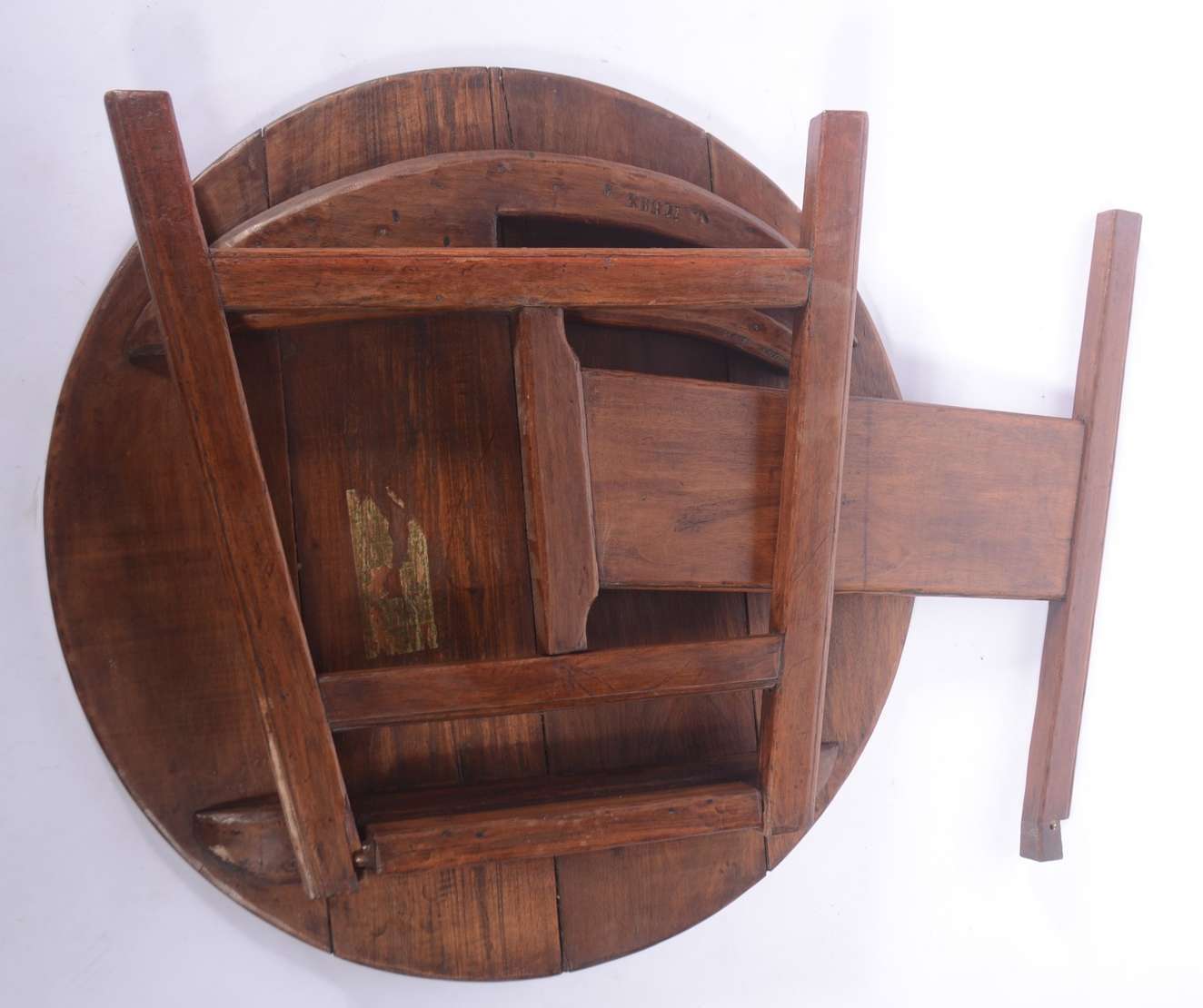 Mesa para jogo de xadrez com armação de metal e tampo de madeira. (desgastes)