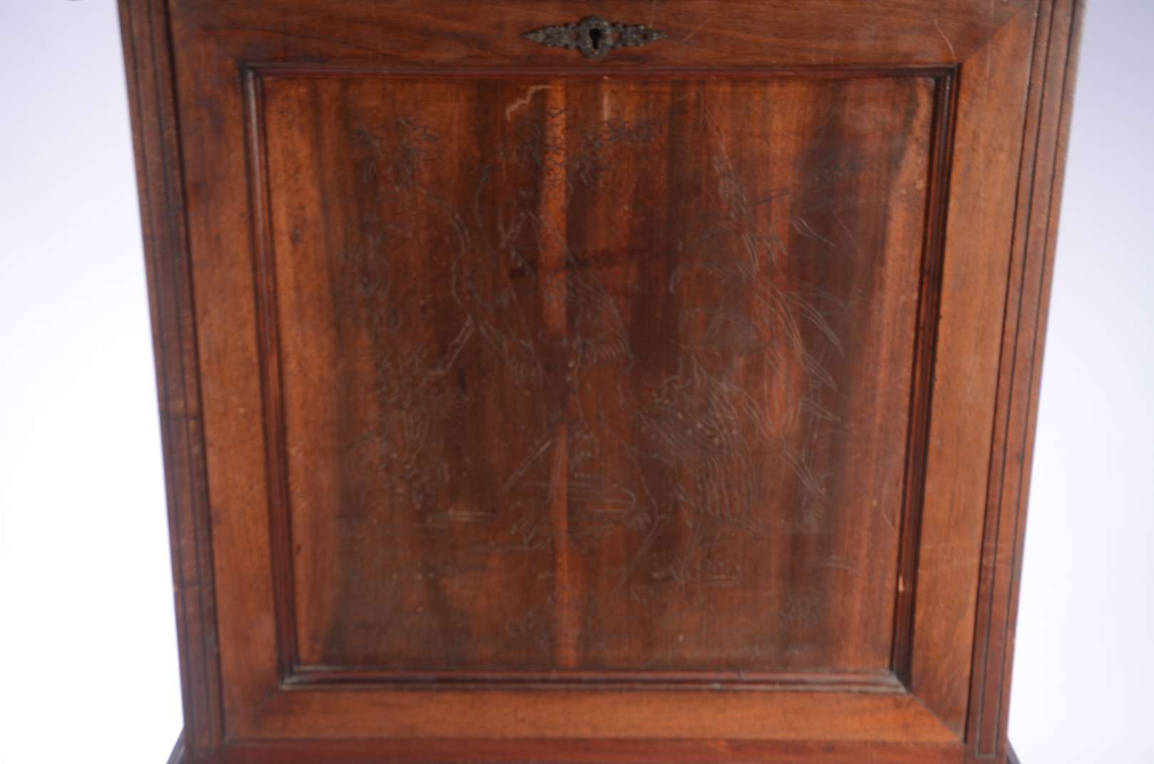 Dunquerque de madeira nobre ebanizada, porta central com trabalhos em marqueterie, aplicações de metal dourado, tampo...