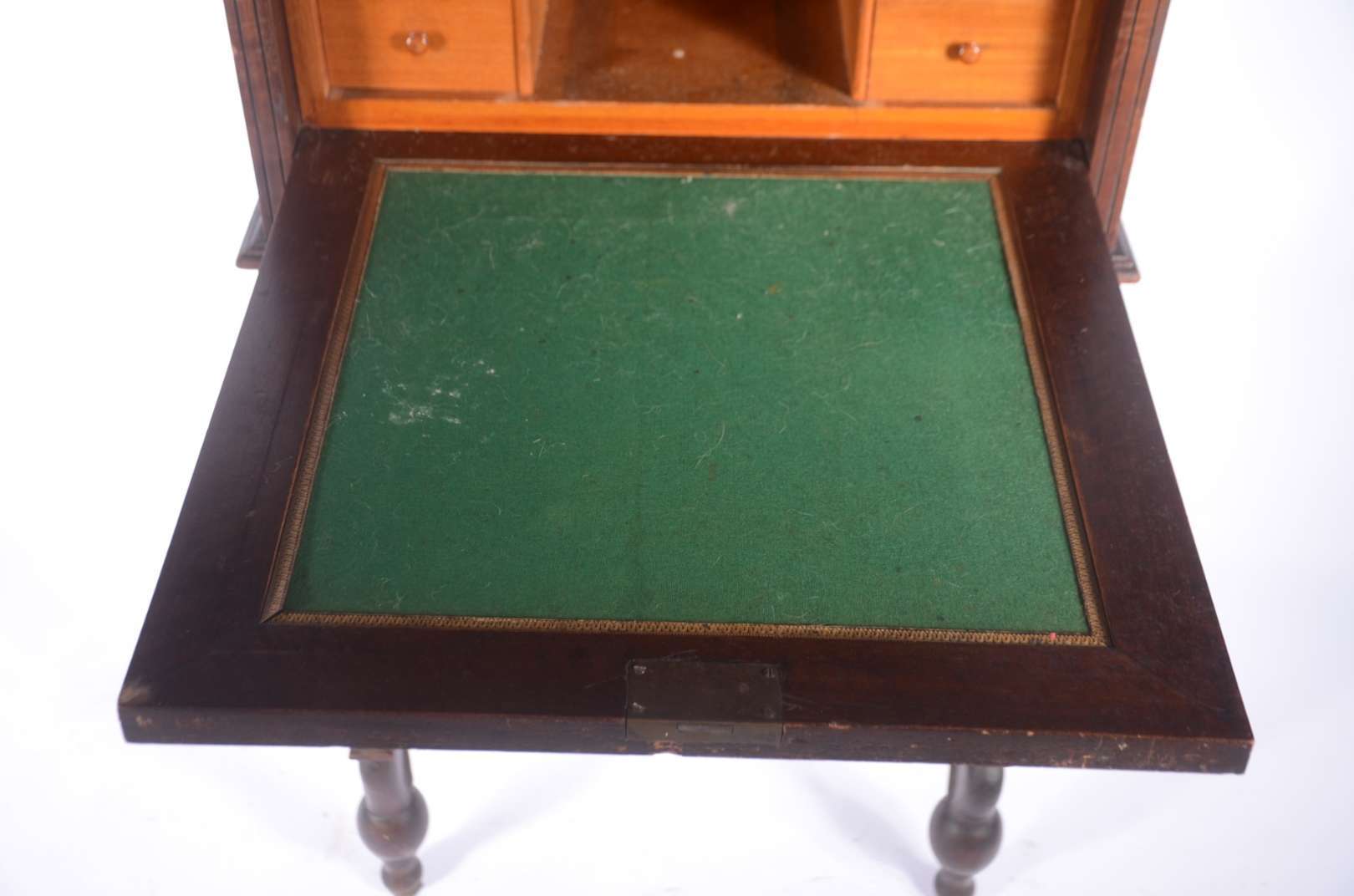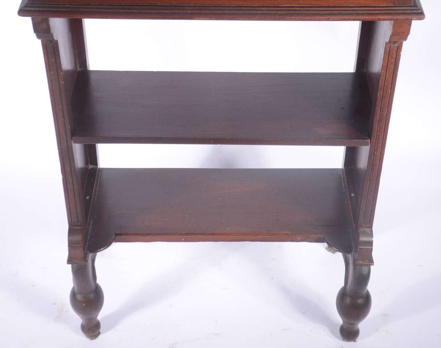 Porta bibelot de madeira nobre em quatro estágios unidos por finas colunas torneadas.