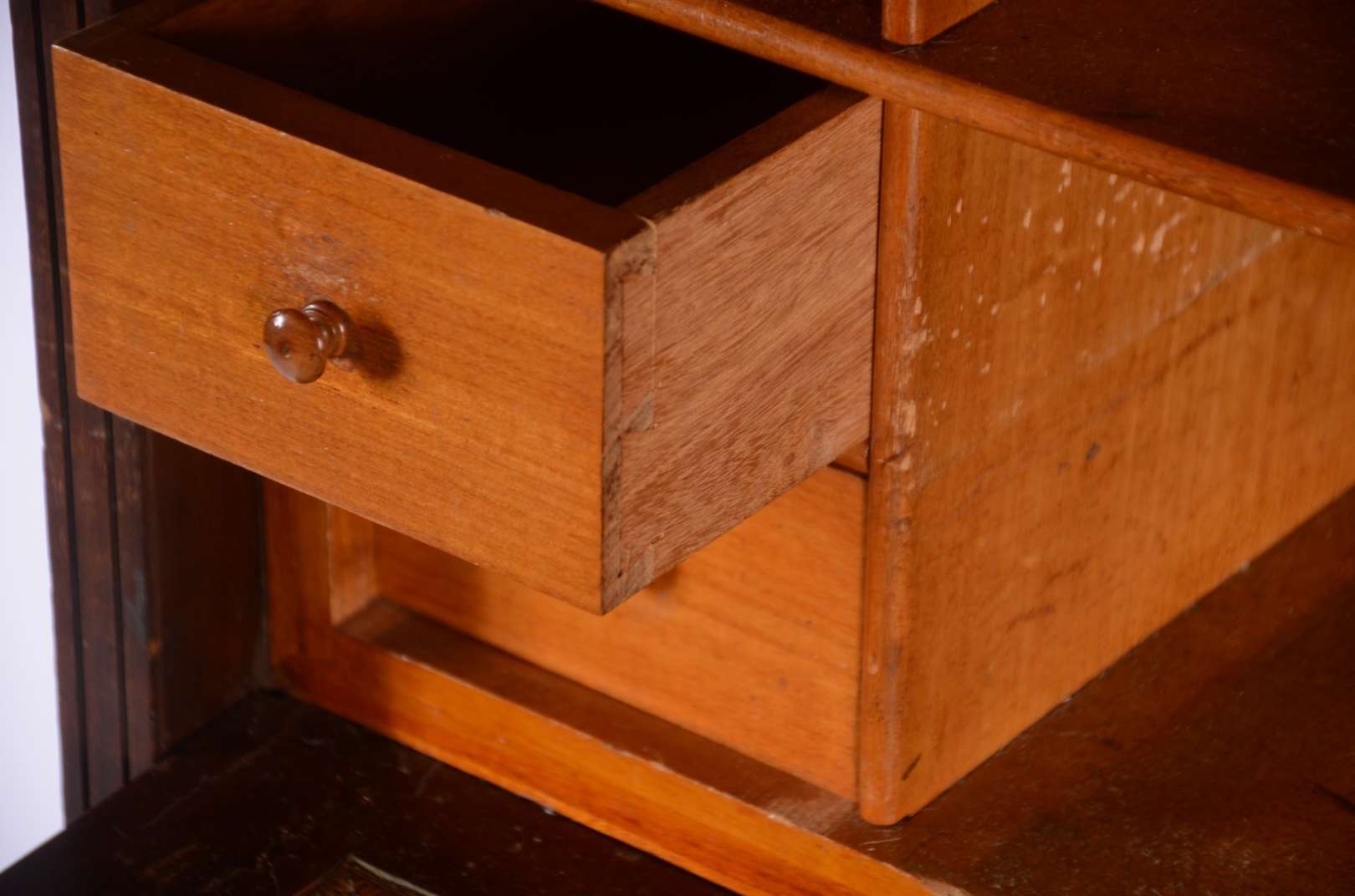 Cômoda de madeira nobre, 2 gavetões e 2 gavetas, pernas retas. Com desgastes.