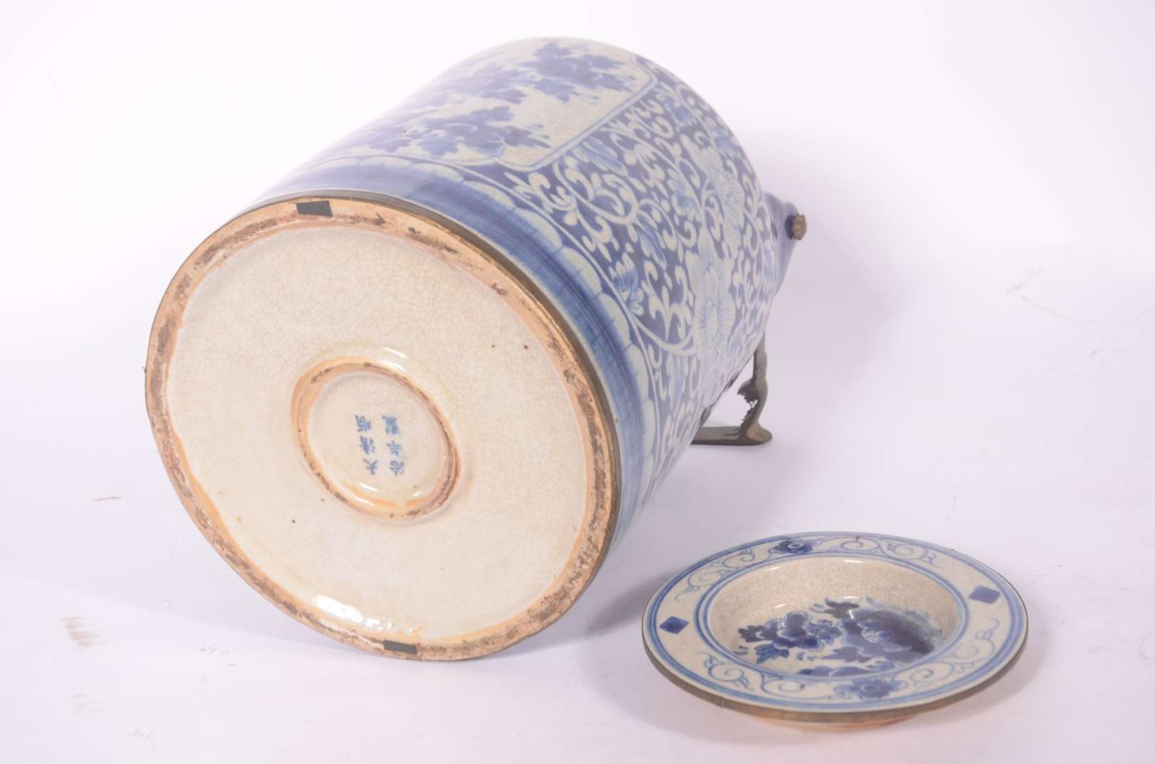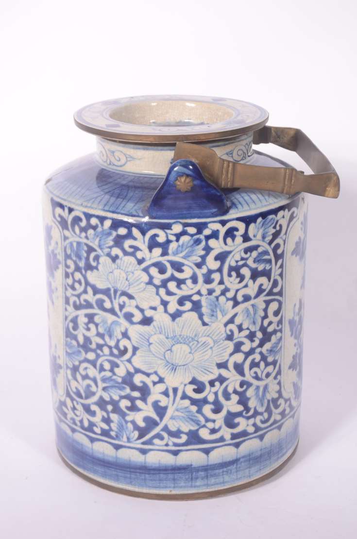 Cachepot de bronze chinês decorado com placas em cloisoné policromado.