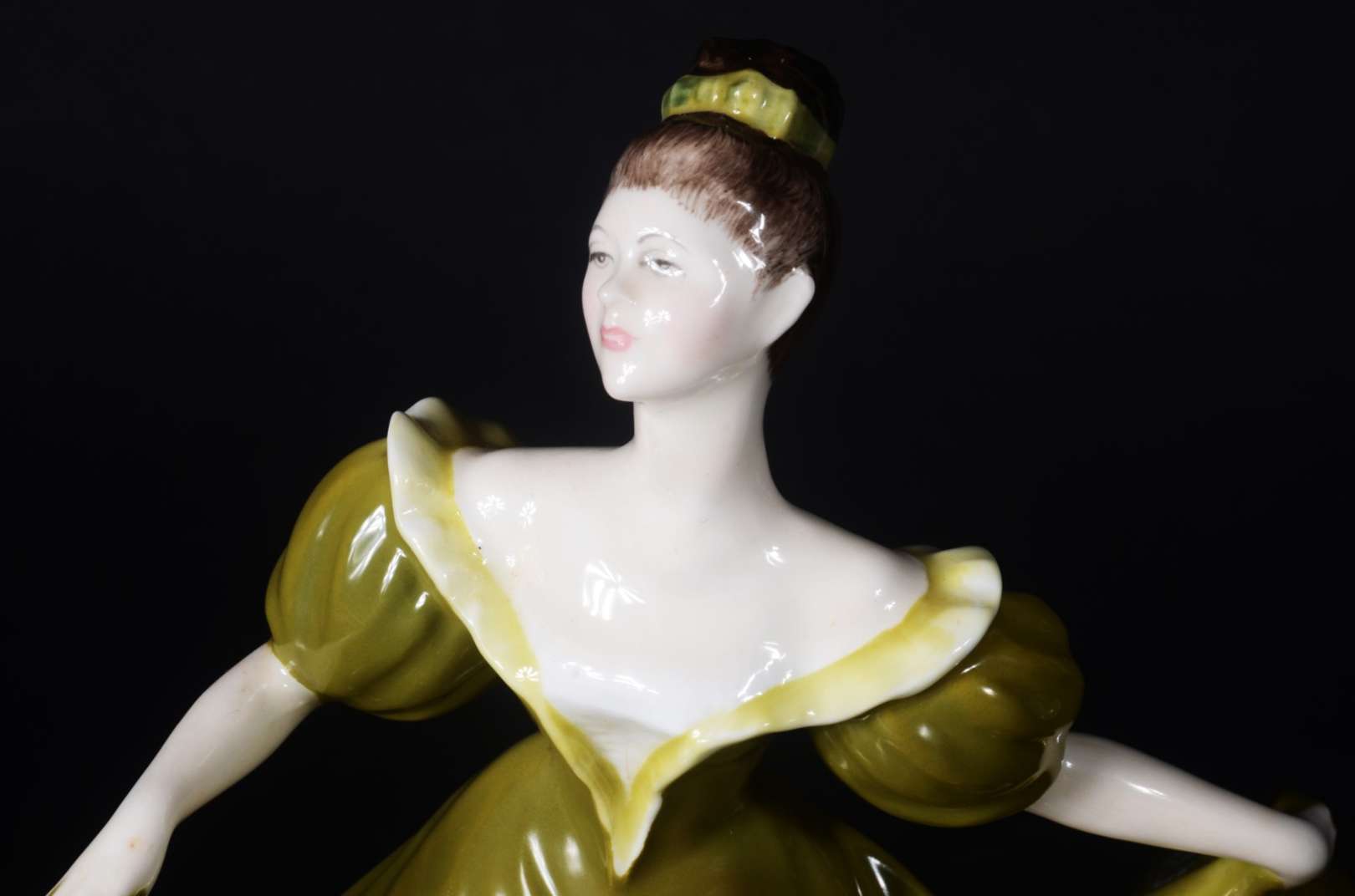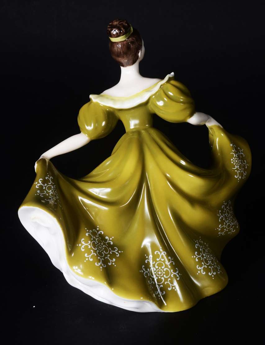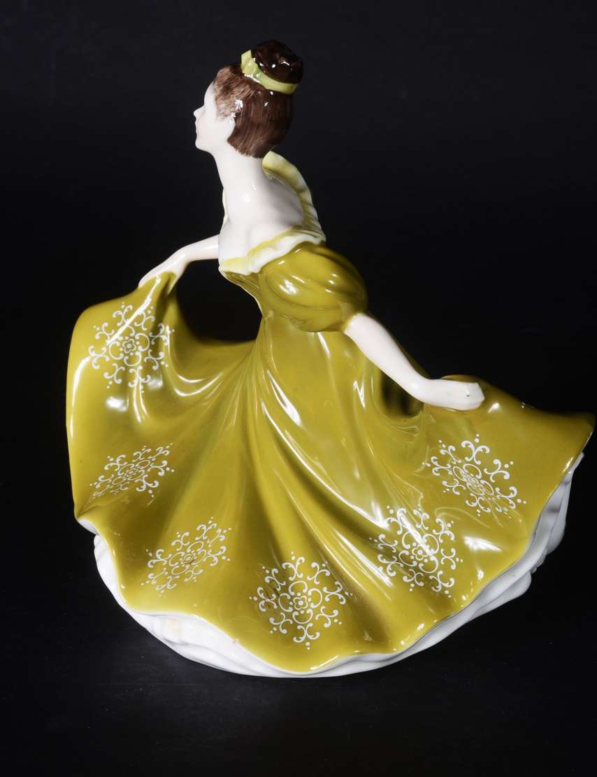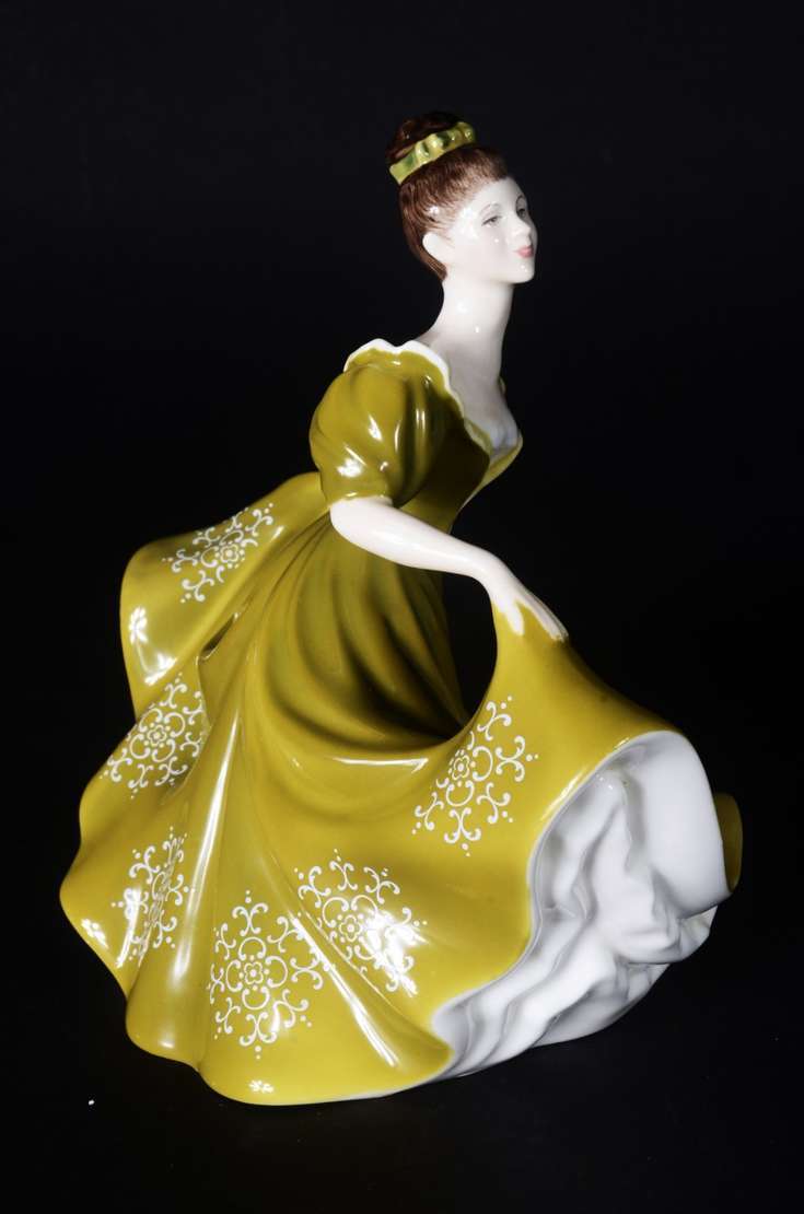 Estatueta de porcelana representando dama com violino.