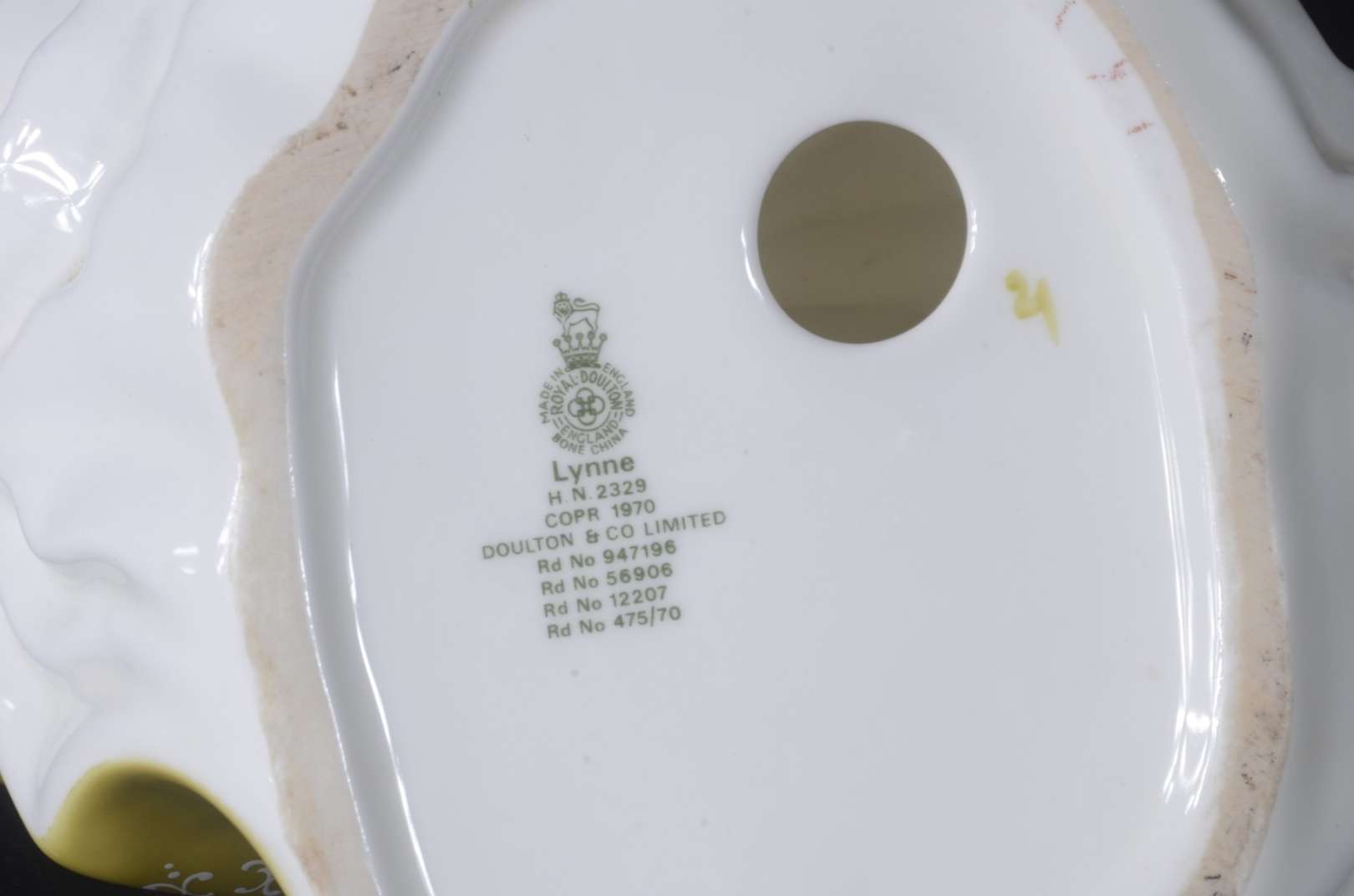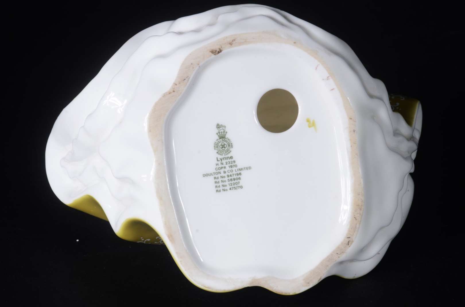 Estatueta de porcelana representando dama com cesto de flores.